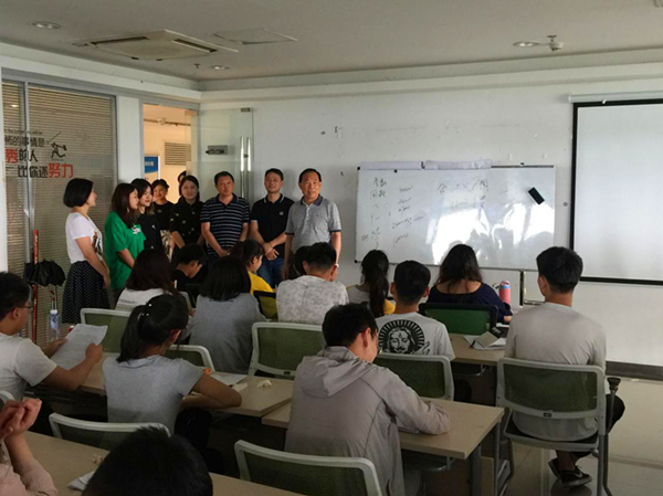 张友方对beat365在线体育官网登录入口一行表示了热烈的欢迎,就校企合作模式及学生培养效果进行了汇报。他强调beat365网登培养的应用型人才特别符合企业的需求,华拓金服作为国内金融服务外包的领军企业,非常重视与高校的产教融合模式。近两年,华拓金服安徽分公司与财会与金融学院的联合培养效果显著,在各项目组中,新华学子的表现优异,得到基地领导和项目领导的一致好评,目前合肥公司留任近百人,其中有5名同学发展为业务主管、8名同学发展为业务组长,薪资平均稳定在8000左右。