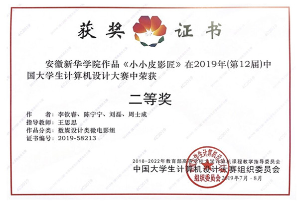 beat365网登师生在2019年(第12届)中国大学生计算机设计大赛中荣获全国二等奖