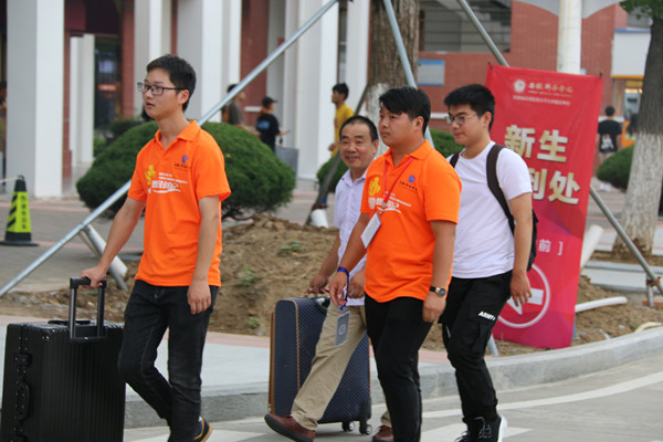 8月31日,正式报到的第一天。参与迎新的志愿者们不停地穿梭在教学楼与宿舍之间,引导新生报到,帮助新生搬运行李,介绍学校概况;“活力橙”们的志愿服务构成了华园里最靓丽的一道风景线。他们来自不同的学院,不同的社团组织,但他们都拥有着一个共同的名字——志愿者。