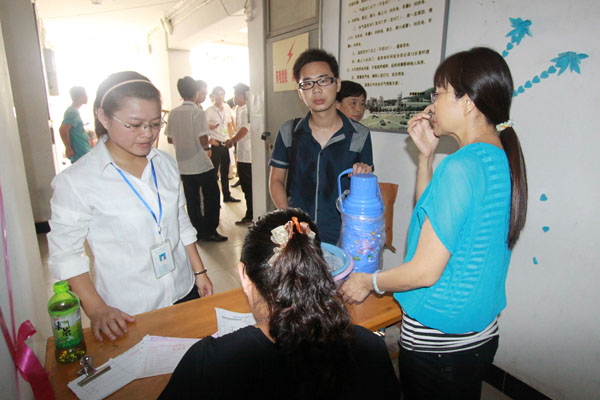 涂阿姨告诉记者,她们整个暑假都在宿舍管理处值班,为开学的新生准备物资,看管宿舍楼。7栋宿舍楼送走了所有的毕业生,现在几乎全部是2012级新生的宿舍。明天正式开学,阿姨的工作量会十分繁重。虽然很忙,涂阿姨说:“看到那些新生,我们觉得很高兴。”对于初来乍到的新生们,涂阿姨说对待他们和对待自己的孩子一样。希望新来的这些学生,能够与自己和睦相处像一家人一样。话刚说完,涂阿姨又去为新生们工作去了。