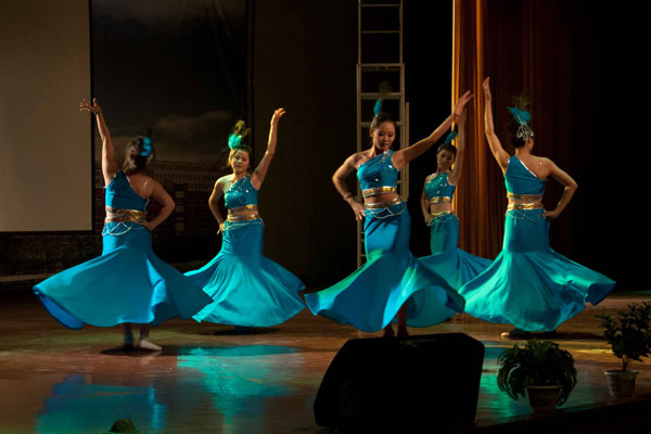每场演出精彩纷呈,既有充满异域风情的民族舞,又有激情四射的街舞表演,还有温婉动听的歌曲、搞笑幽默的相声,二胡演奏让同学们沉醉其中,模特队的青春靓丽更是赢得了同学们的阵阵掌声与尖叫。此外,迈克尔杰克逊模仿秀、雷人舞等节目更是掀起了一轮又一轮高潮。