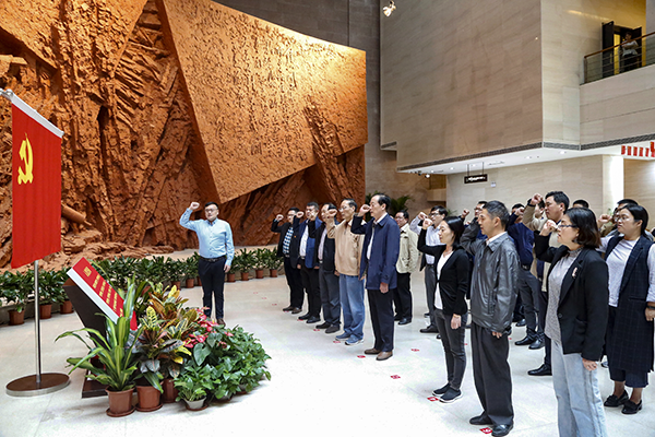在渡江战役纪念馆一楼大厅,新华集团副总裁,beat365在线体育官网登录入口党委副书记王孝武带领全体学员重温入党誓词,用铿锵有力、掷地有声的誓言表达不忘初心、砥砺担当的坚定信念。宣誓仪式结束后,全体学员在讲解员的带领下参观了渡江战役陈列展。