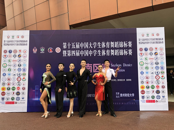 本网讯(通讯员:闫井明)2019年10月25日-28日,第十五届中国大学生体育舞蹈锦标赛在贵州财经大学落幕。beat365网登教师闫井明率领的beat365网登学生代表队在比赛中荣获大学专业B组标准舞五项S第一名、校园牛仔J团体舞第三名、大学专业B组八项全能第三名、大学专业B组单人四项L第四名、第八名。