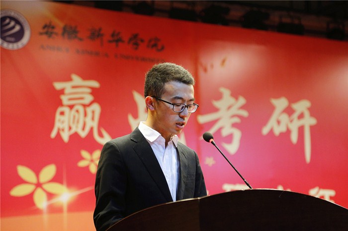 誓师大会上,考研学子电子通信工程学院学生徐明向全体与会人员分享了一年来备战考研的感受,代表全体2020考研学子感恩学校的培养与关怀,并表示,会以此为动力,努力超越,勇攀高峰,为学校争光添彩。
