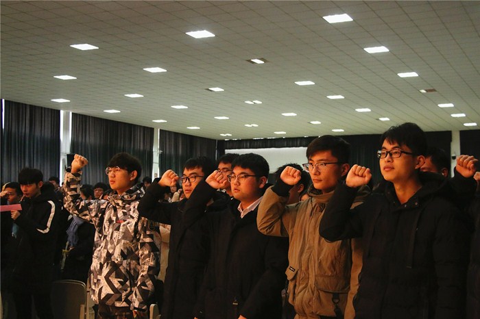 随后,全体考研学子宣誓,他们用誓言表达出迎战考研的信心和斗志。