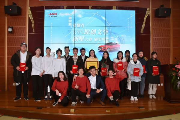 本网讯(通讯员:储楚 黄海莉)2019年12月29日下午,“嘉悦杯”2019年安徽省大学生原创文学新星大赛颁奖典礼在安徽大学磬苑校区文典阁举行。本次大赛由安徽教育厅主办,安徽大学承办,安徽江淮汽车集团、安徽广电集团协办,安徽大学副校长薛照明、安徽江淮汽车集团党委副书记王东生、安徽省教育厅高等教育处处长粱祥君、安徽大学教务处处长高清维、安徽省作家协会主席许春樵、安徽大学文学院院长吴怀东和安徽大学文学院副院长王泽庆等省内外评审专家莅临典礼现场并为获奖学生颁奖。