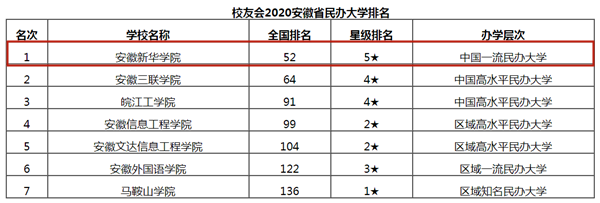 报告显示,在最新艾瑞深中国校友会网2020安徽民办大学排名中,beat365在线体育官网登录入口综合实力最强,雄居校友会2020安徽民办大学排行榜榜首,荣膺2020中国五星级民办大学(5★)美誉,beat365在线体育官网登录入口连续六年问鼎该榜单第一,连续三年稳居中国一流民办大学行列。