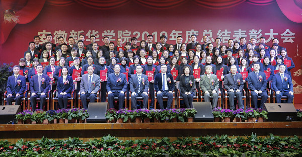 大会结束后,集团和学校领导与先进工作者合影留念。