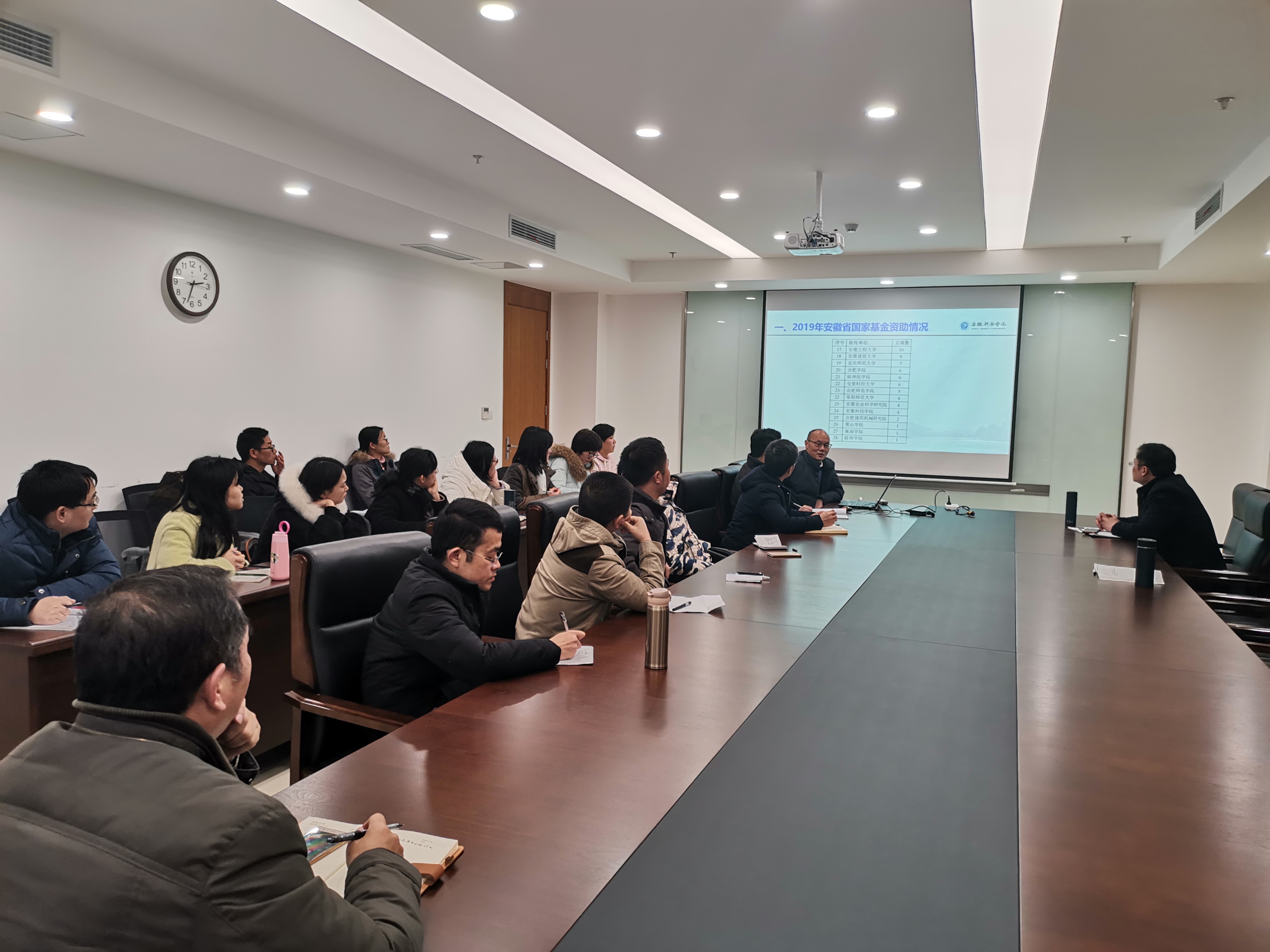 会议伊始,黄仿伦对2019年安徽省国家基金资助情况进行了简要介绍,详细解读了2020年国家自然科学基金资助政策的变化和撰写申报书的注意事项。他强调,beat365网登申硕建设工作需要高质量的科研项目做支撑,希望大家能够高度重视积极申报,认真撰写申报书。
