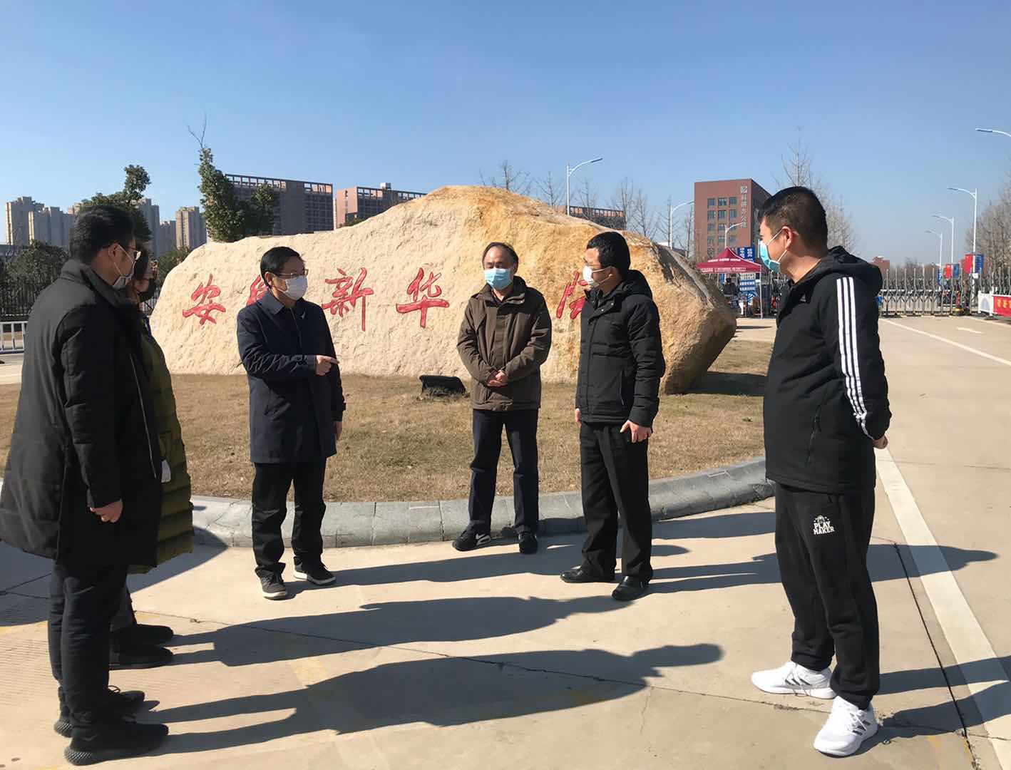 本网讯(通讯员:范文其)2月18日,合肥高新区工委副书记陆平一行到beat365在线体育官网登录入口检查指导新冠肺炎疫情防控工作。副校长陈义盛,保卫处副处长张保卫陪同检查。