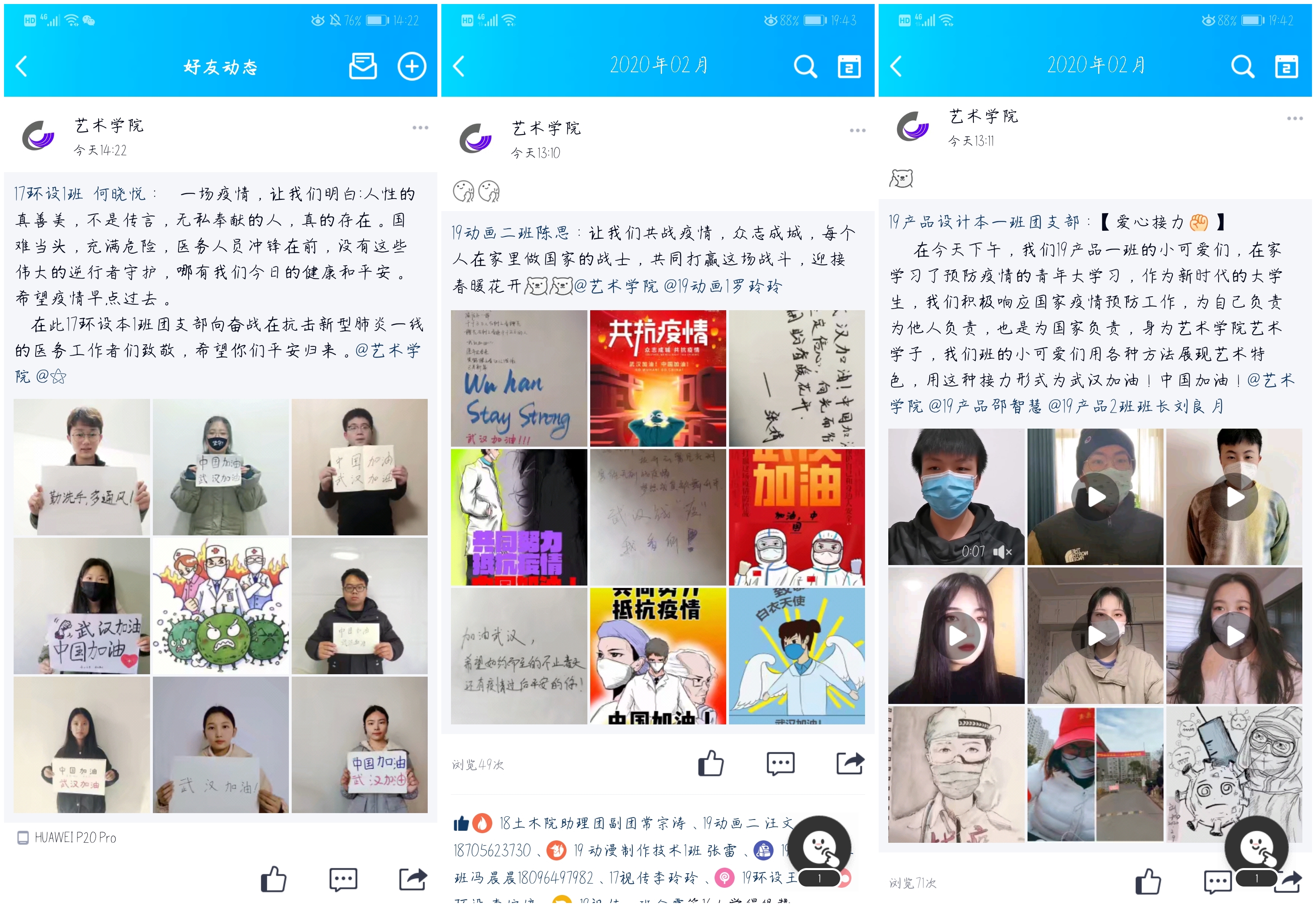 为紧跟“停课不停学”的脚步,艺术学院通过多形式多角度拓宽“云端第二课堂”,建立“思想引导、行动指导、精神传导”的多维引领模式,保证引领育人不掉线。