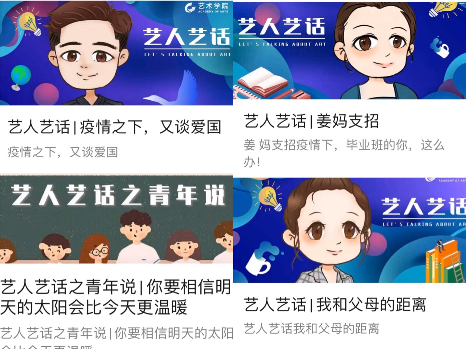 精神传导永在线,“云服务”“云发声”深入实践并转化输出,疫情以来,艺术学院构建了以学院党总支、学生志愿服务团队、师生个人“三级多项”的志愿服务活动体系。社区疫情防控点、捐款捐物、精准扶贫“云助农”、网课学困“云支教”、学生物品代寄代拿等志愿服务,展现艺术学院全体师生积极向上风貌,传递无声的“艺术力量”。微信公众号“新华艺院”通过“艺人艺话(教师版)”“艺人艺话之青年说(学生版)”,以理论宣讲、实践指导、工作所悟等原创文章,实现师生齐发声,记录青年生成长,传递青年之声。