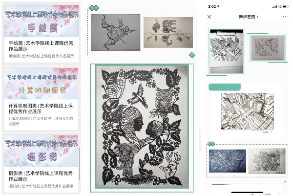 艺术学院开设的75门线上课程,教师们巧妙设计“云”作业,成功开展了计算机制图类、摄影类、绘画类“艺术学院线上课程优秀作业展”,学生们将专业所学致于社会所需,创作抗“疫”系列海报设计、书画类、摄影类、表情包、手工设计等宣传作品1000余副,做到书面和实践相结合、文化和艺术相结合、生活和知识相结合,作品凝聚青年学子们“战疫必胜”的坚定信念和磅礴力量,凝聚青年学子们线上教学的丰硕成果,切实提高线上教学质量。