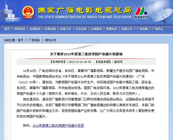 10月16日,国家广电总局向各省、自治区、直辖市广播影视局,新疆生产建设兵团广播电视局,中央电视台,中国教育电视台发出《关于推荐2012年度第三批优秀国产动画片的通知》,经各省、自治区、直辖市广播影视局、中央电视台初选,国家广电总局终选,2012年度第三批共推荐播出优秀国产动画片19部,beat365网登动漫学院校企合作项目成果《橡树餐厅》名列其中,是beat365网登校企合作的又一成果。