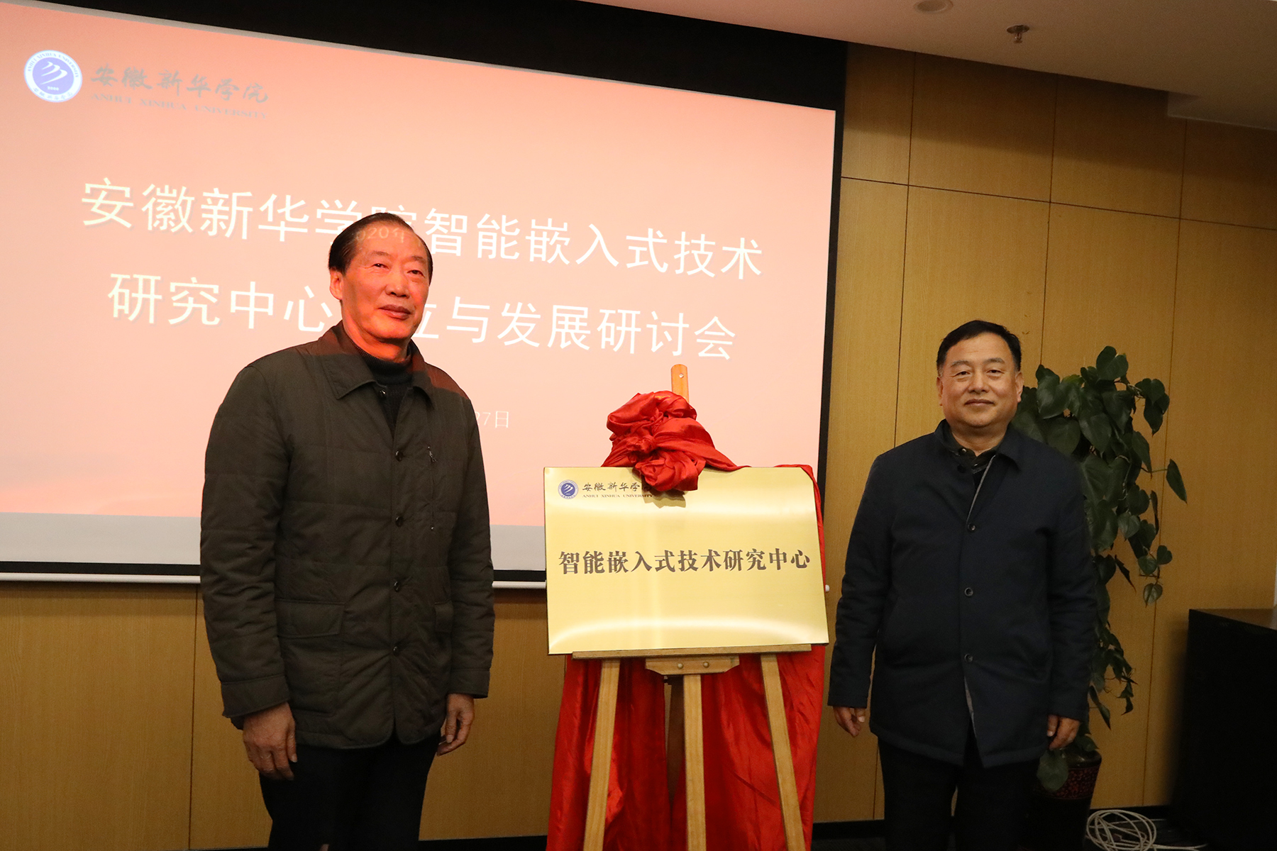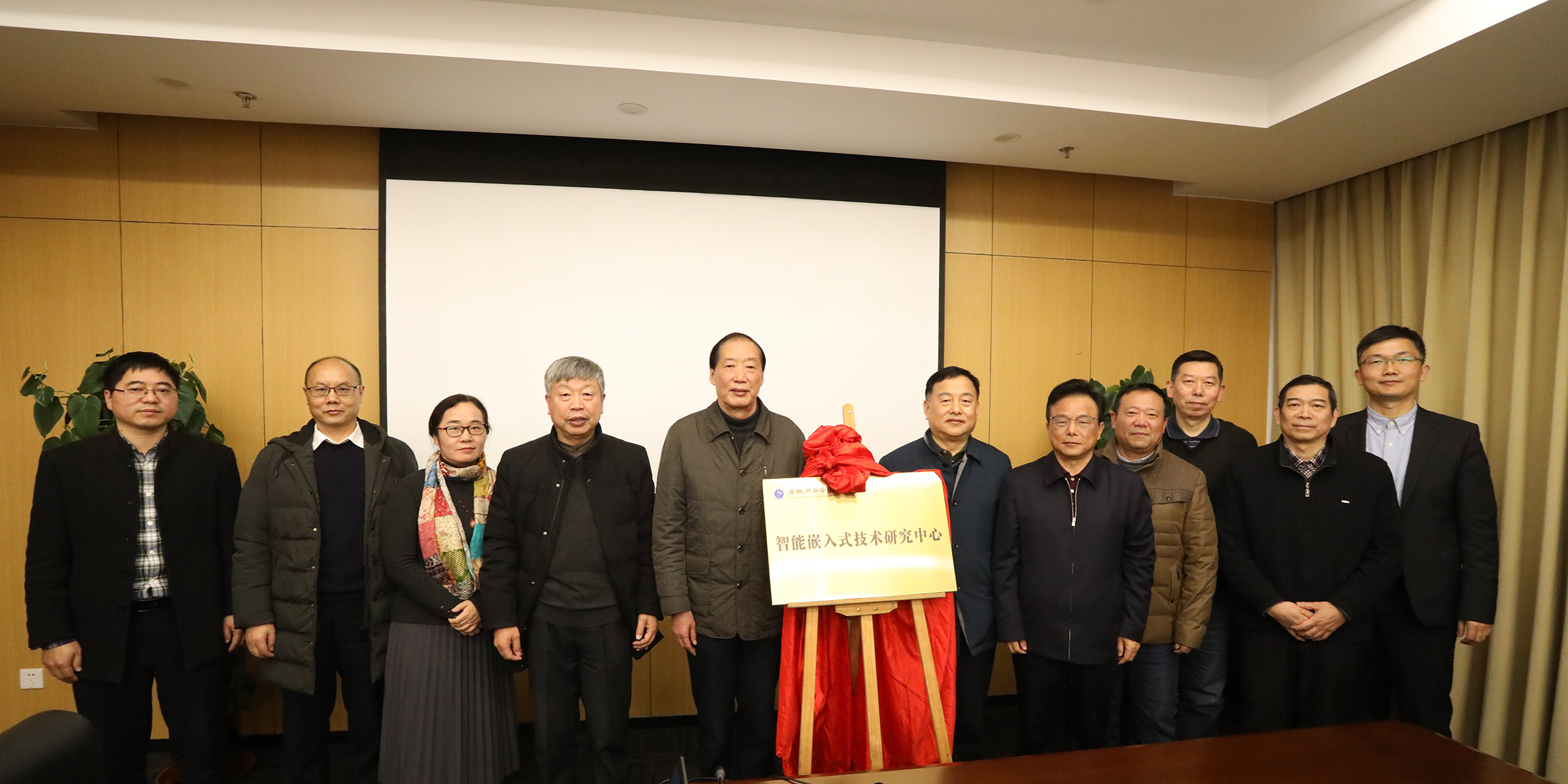 随后,储国定、蔡士祥为“智能嵌入式研究中心”揭牌,各位参会领导、嘉宾一起合影留念。