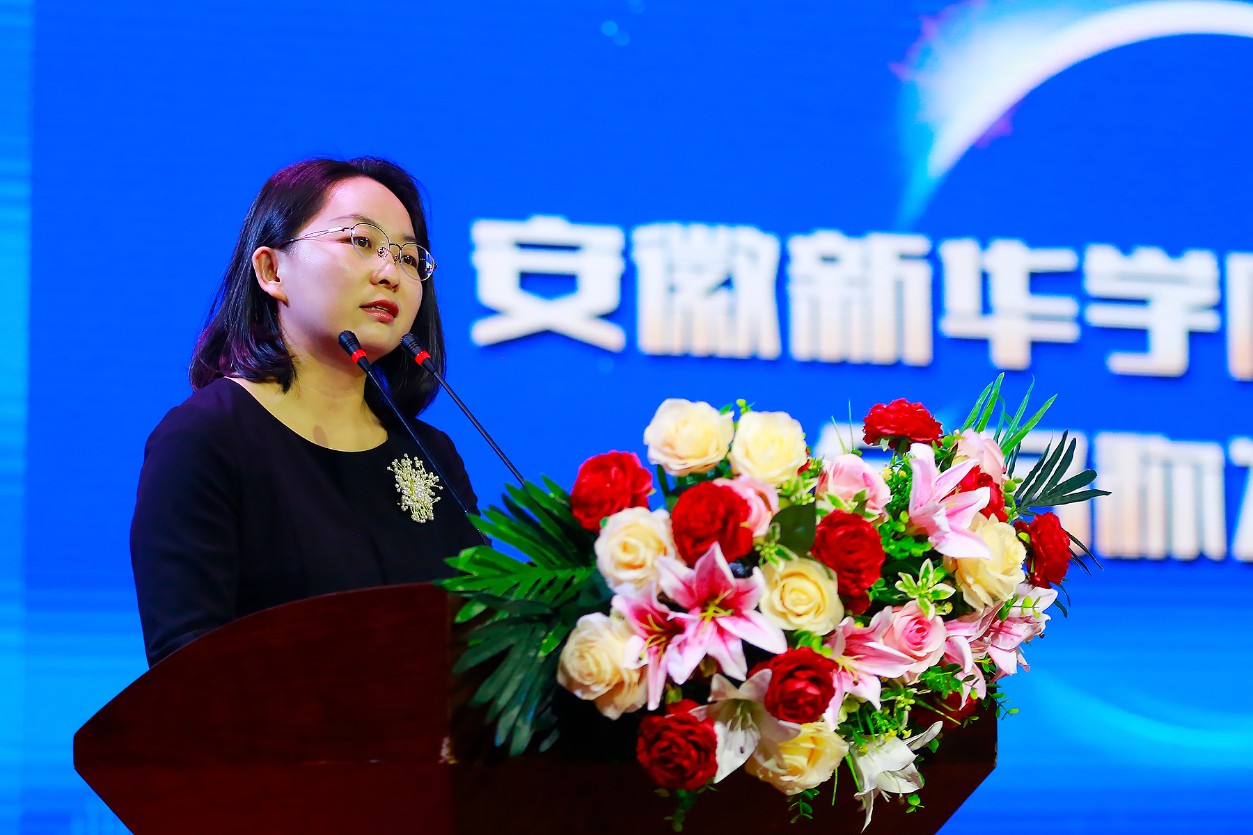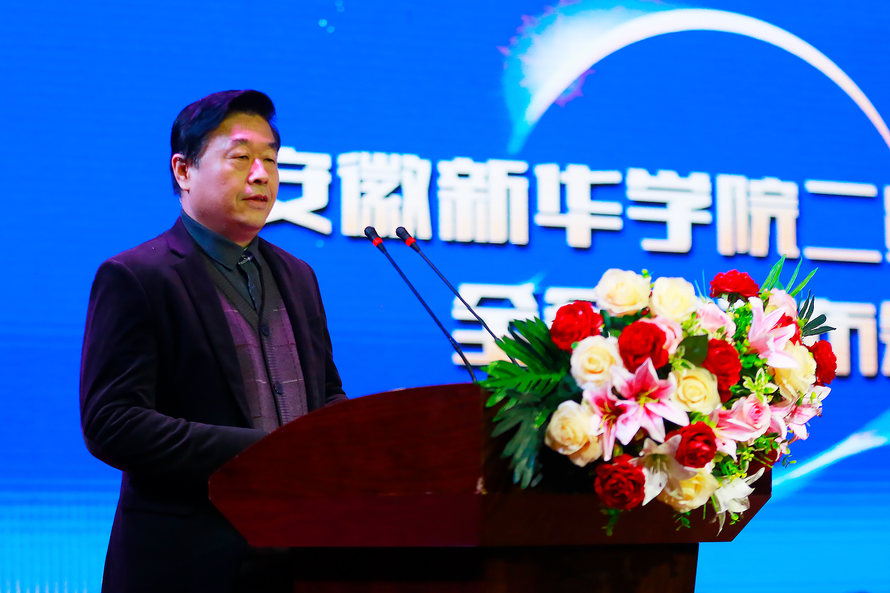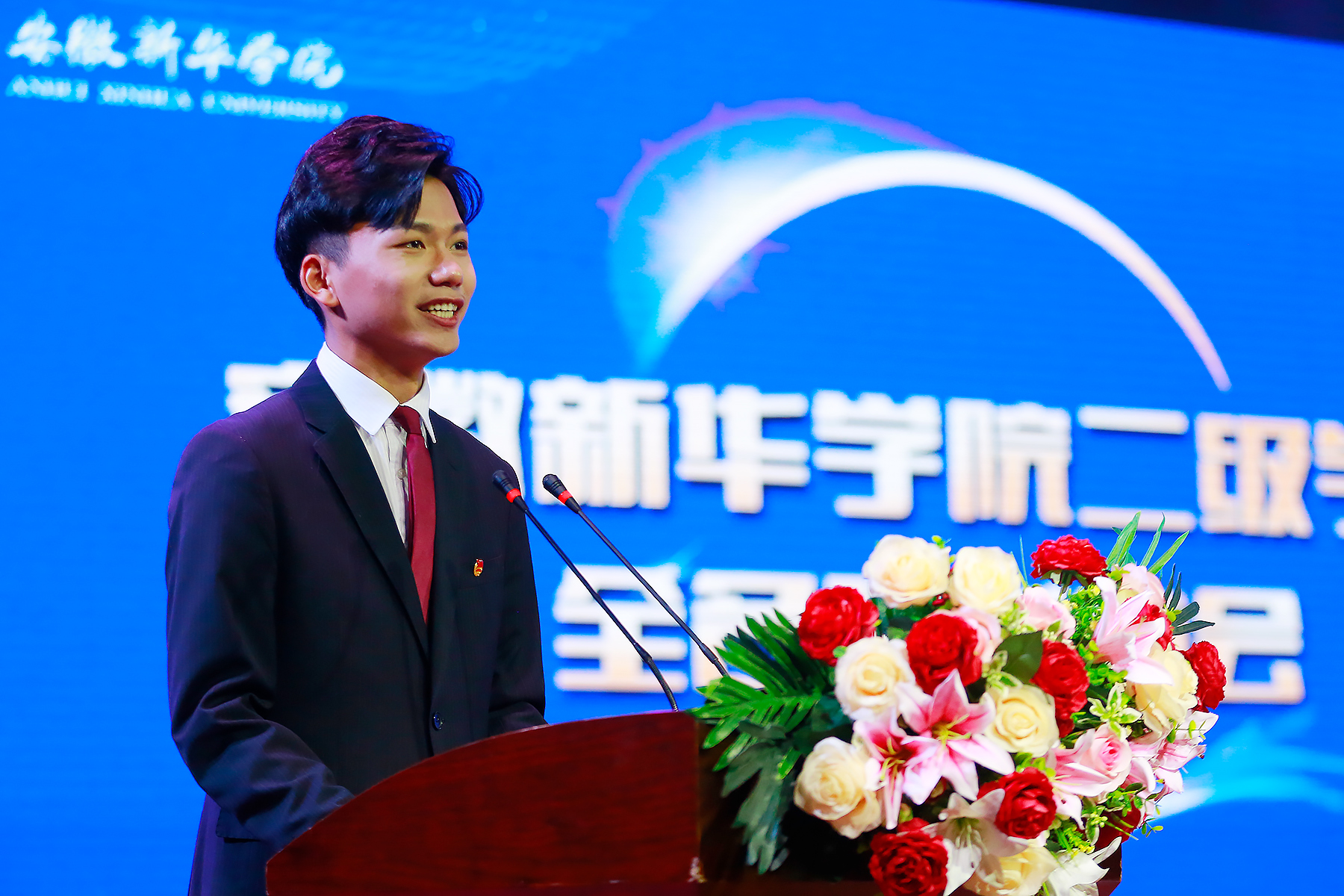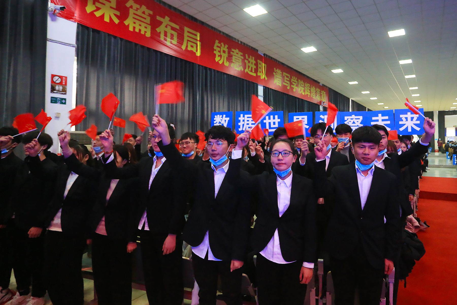 校执行董事储国定为12个二级学院授牌。随后,二级学院标识、院训正式亮相,各学院师生在台下铿锵有力地喊出他们的院训,现场热血沸腾!