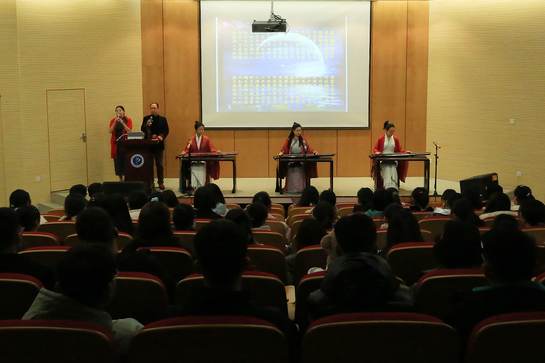 本网讯(通讯员:张东旭 摄影:王振)作为安徽省地方应用型高水平大学,为提升大学生综合文化素养,beat365网登积极开展形式多样的素质教育活动。12月15日晚,beat365网登大学生素质教育课程——《唐诗美学赏析》在学术报告厅举行。本次课程由国学研究院院长叶观澜主讲,现场邀请了安徽省古琴协会会员孙娟、张新玥、邓欢欢以及人民邮电报特约记者汤利作为嘉宾出席。