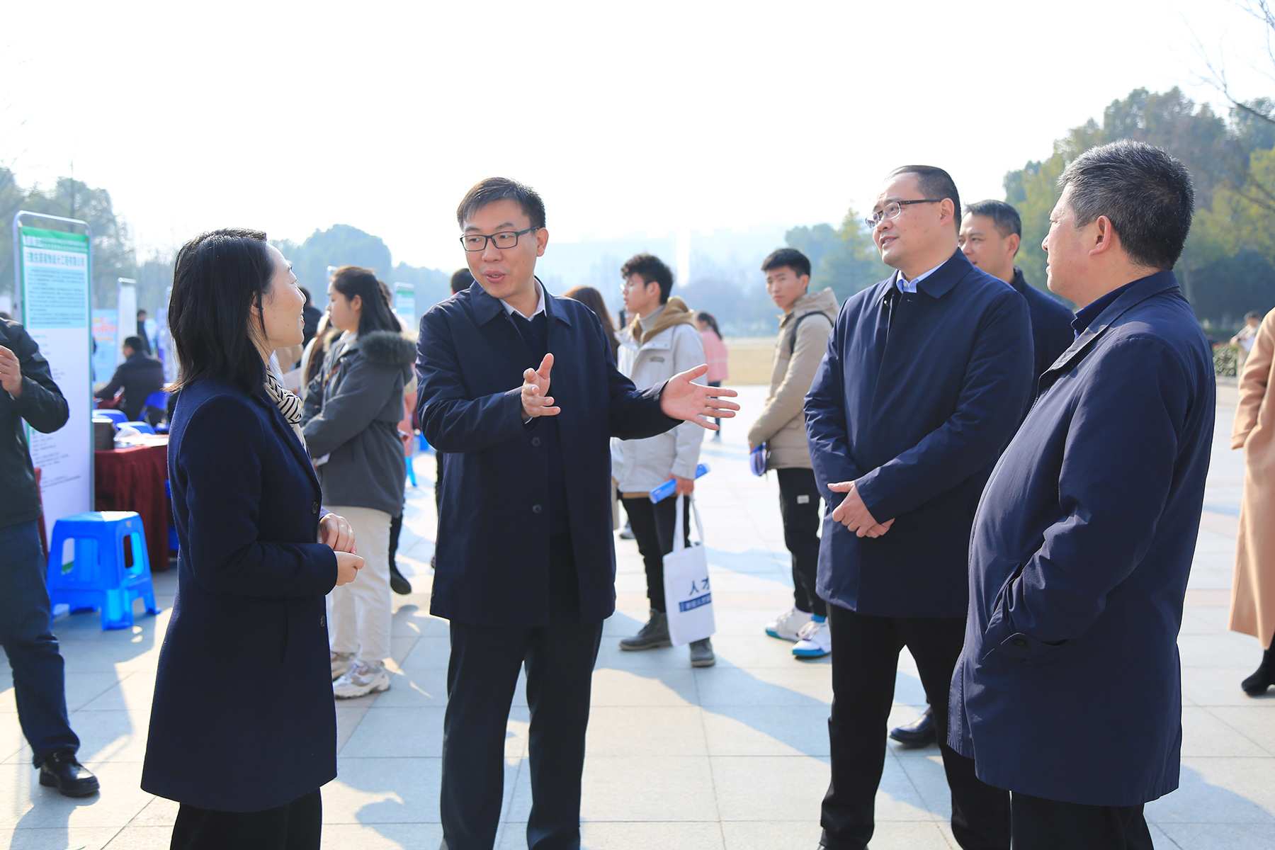 团省委青少年发展和权益维护部部长陈永刚、省人力资源和社会保障厅就业促进和失业保险处副处长、省就业局局长助理唐晓峰、安徽青年报社社长汪小雅、beat365在线体育官网登录入口常务副校长王丽、校长助理汪俊东、安徽青年报社副社长马振宇、新闻中心主任张华等领导在科研楼开展交流座谈会,会议由张华主持。beat365在线体育官网登录入口学生处首先对此次活动的组织开展情况作了专项汇报,王丽代表学校向团省委、人社厅、青年报社等各位领导表示热烈的欢迎,对就业系列公益活动送指导、送服务、送岗位到学校表示衷心的感谢,希望通过政校企深度合作,发挥多方资源优势,共同助力学生成长就业。陈永刚部长介绍了共青团组织开展春暖皖江就业系列公益活动的情况,表示服务青年成长就业发展是团组织重要的工作之一,希望以此活动为契机,双方继续加强交流,深化合作。唐晓峰处长对毕业生就业相关政策进行了简要解读,并就高校就业创业工作进行了指导。汪小雅社长表示,学校要用好用足各项就业创业政策,积极树立就业创业典型,特别要用好共青团平台,嫁接资源,创新做好宣传工作。随后,在校领导陪同下,相关领导实地参观了招聘会现场。