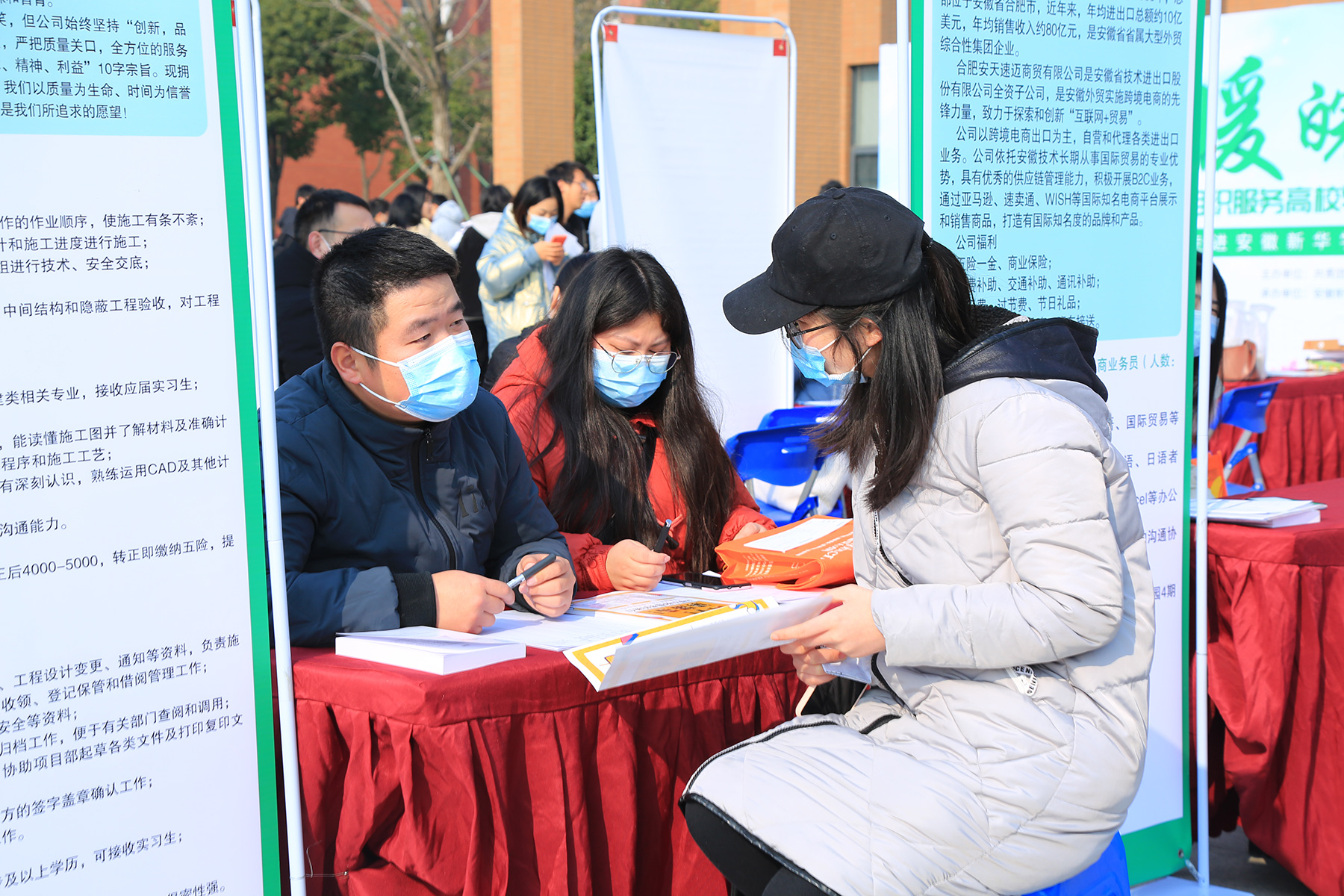 本网讯(通讯员:孙珊珊 摄影:王振、宋梓瑶)为深入贯彻落实党中央、国务院“稳就业”、“保就业”决策部署,坚持强化就业优先战略政策,进一步发挥共青团组织化、社会化动员优势,切实拓宽高校毕业生就业渠道,努力帮助毕业生实现更加更高质量就业。12月19日,“春暖皖江”2020安徽共青团组织服务高校毕业生就业专场招聘会在beat365网登举行,同时围绕高校毕业生生涯规划、求职就业等方面开展了一系列活动,此次活动由共青团安徽省委员会主办,安徽青年报社、beat365在线体育官网登录入口、新安人才网承办。