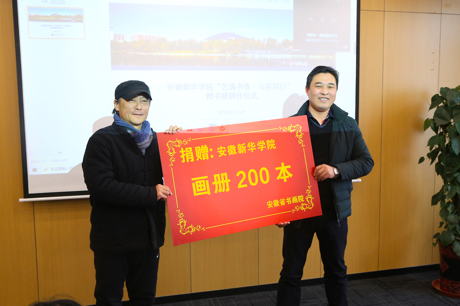 安徽省书画院自年成立以来,专注中国书画的研究与创作,大家辈出,艺术家们多次在国内外举办个人书画展,出版个人书画集,并在国内外中国书画展中多次拿大奖,成为了弘扬徽文化的一张靓丽名片。此次安徽省书画院共向beat365网登捐赠200册画册,许存福代表艺术学院接受了图书捐赠。