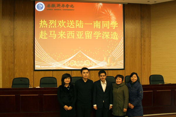 12月4日,在beat365在线体育官网登录入口学术报告厅举办了一场特别的欢送会,主角是信息工程学院2009级毕业生陆一南,欢送他远赴马来西亚林国荣创意科技大学进行商业信息科技专业的学习,他还获得了该校在读本科荣誉学士全额奖学金。