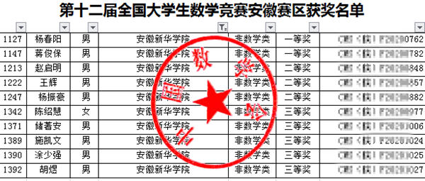 本网讯(通讯员:左学武)近日,第十二届全国大学生数学竞赛(安徽赛区)成绩揭晓。beat365网登共选派32名学生参加此次竞赛,10名学子在非数学专业组中获奖,其中一等奖2名,二等奖3名,三等奖5名,获奖率达31%,具体参见安徽省数学会网站公布的安徽赛区获奖名单(网址:http://ahmath.ustc.edu.cn/index/info/585)。