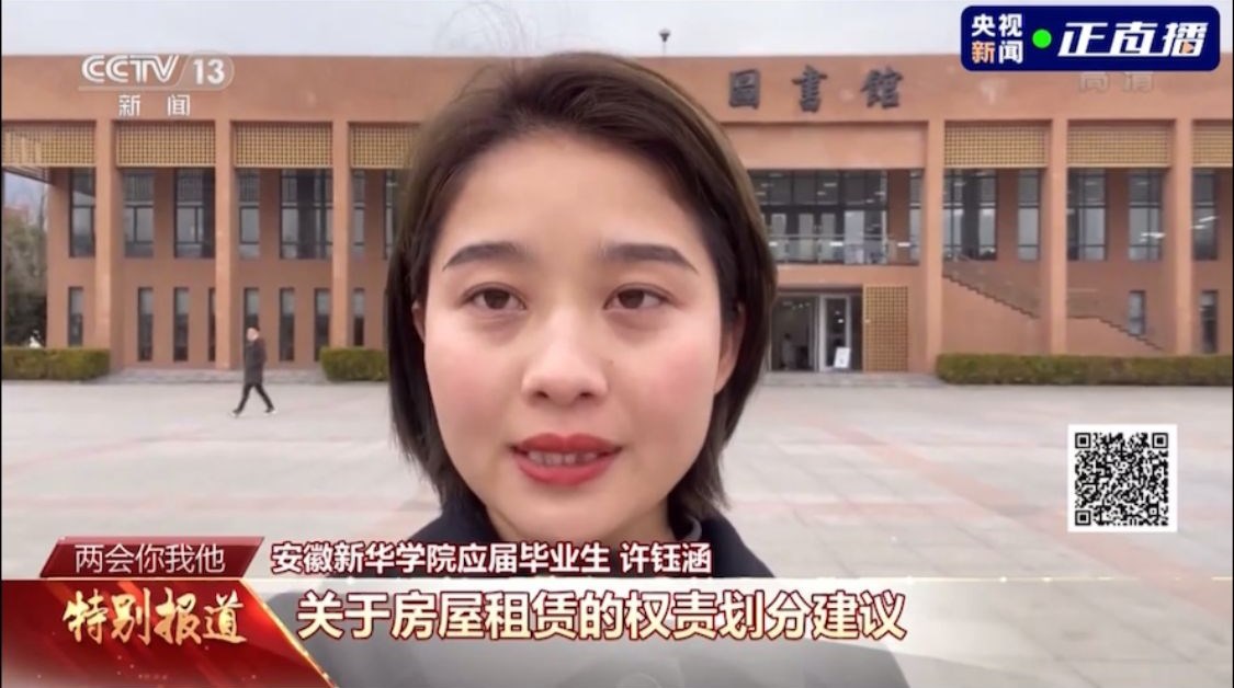 今年的两会,也有beat365网登学子的声音。3月7日,中央电视台新闻频道《两会你我他》节目围绕大学生就业创业这一焦点问题进行专题报道。beat365网登新闻学专业学生许钰涵根据大学生毕业租房问题提出关于房租租赁的权责划分建议,希望出台针对租客权益保护的相关条例。