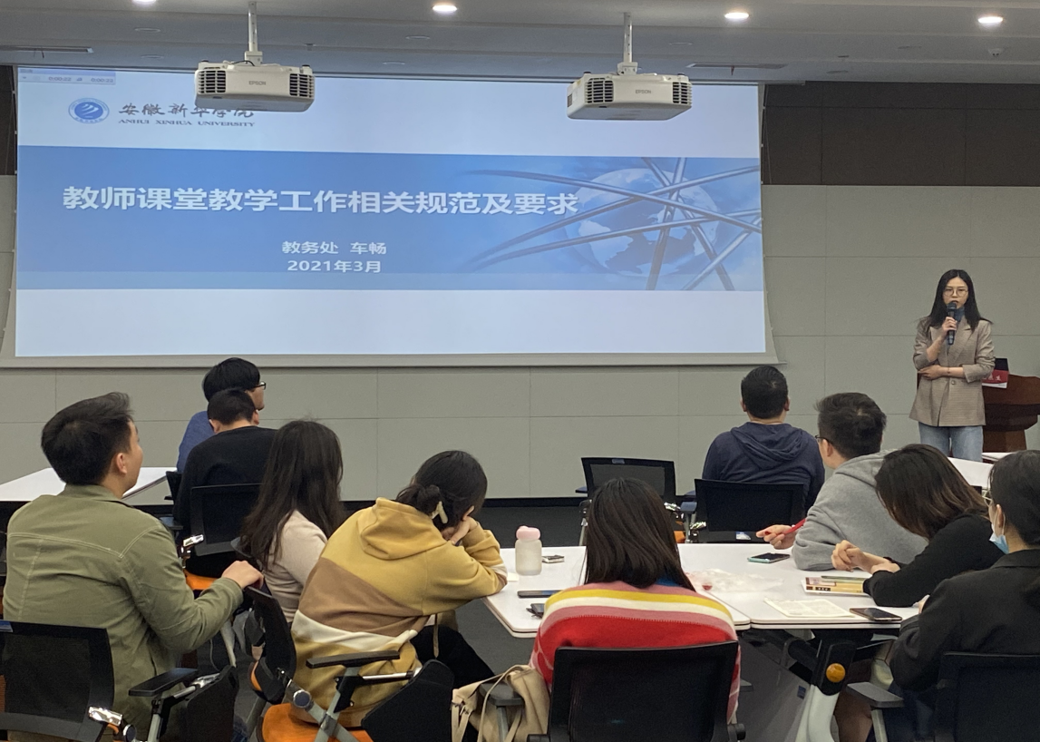 本网讯(通讯员:王宁)为进一步夯实beat365网登新进教师教学基本功,帮助新进教师熟悉beat365网登教学运行基本规范,3月26日下午,beat365网登在科研楼一楼多媒体室开展了2021学年度新进教师教学能力专题培训会。 各教学单位新进教师、部分首次兼课和企业外聘教师参加本次培训,培训会由教务处副处长蔡冬梅主持。