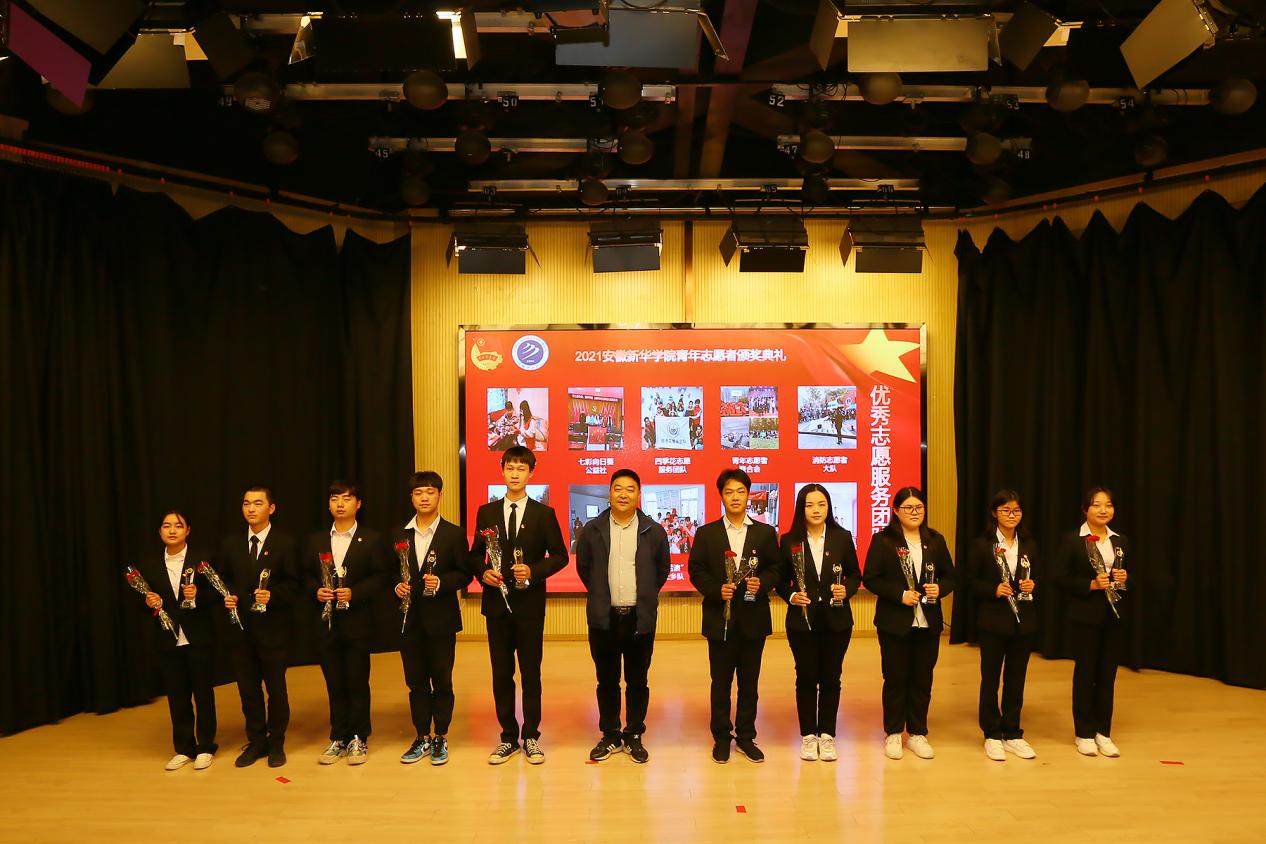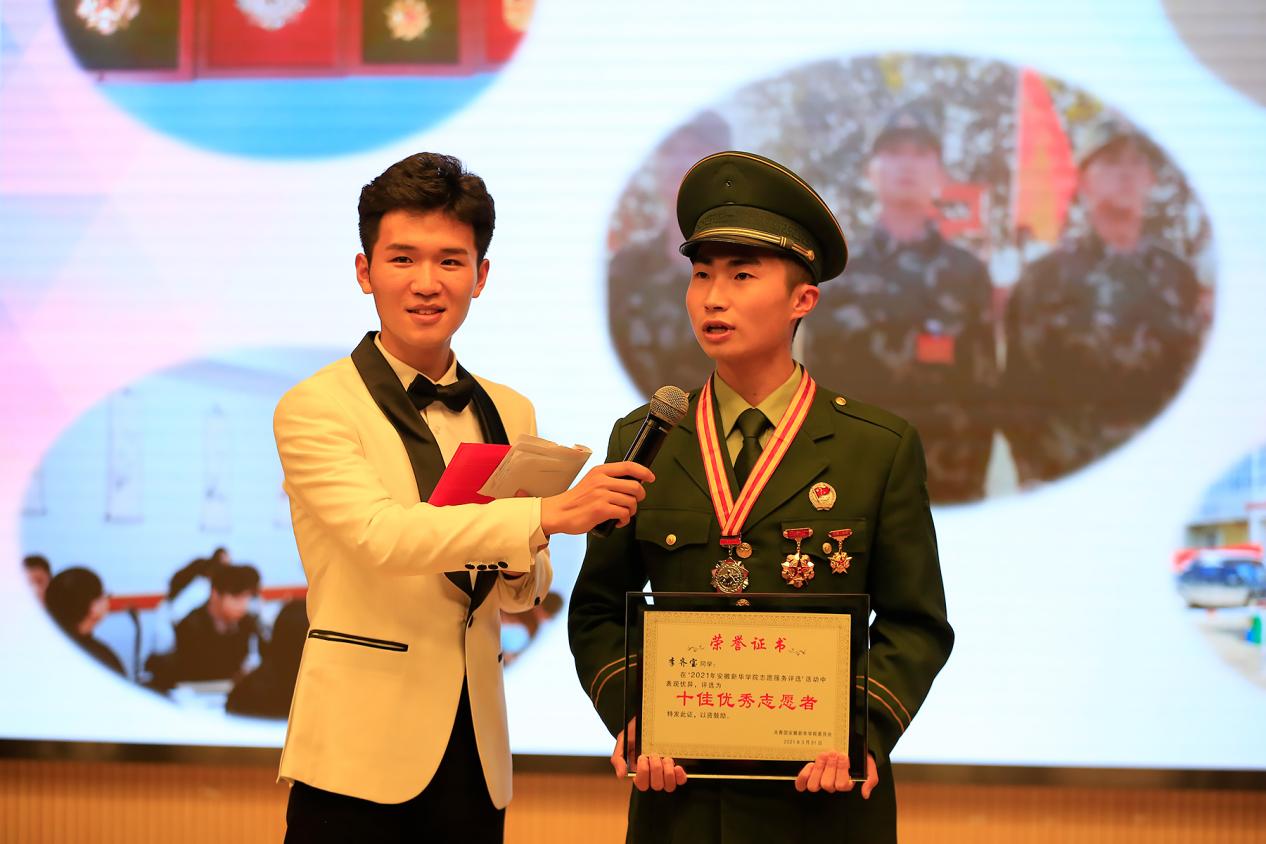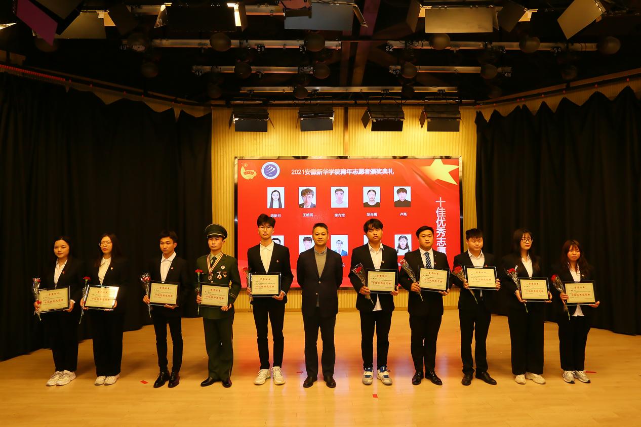 校长助理汪俊东为“十佳志愿者”获奖学生颁奖。