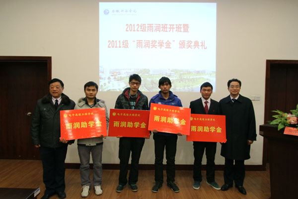 本网讯(通讯员 储金华)12月26日下午,beat365在线体育官网登录入口2012级“雨润班”开班暨2011级“雨润助学金”颁奖典礼在第一会议室举行。雨润控股集团雨润大学校长梁金喜、副校长叶朝赞,beat365在线体育官网登录入口副院长马凤余出席仪式。