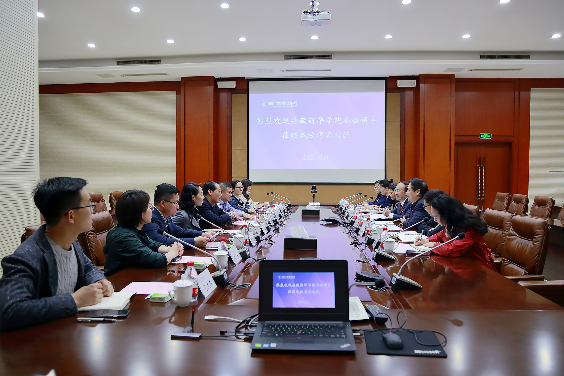 四川大学锦江学院董事长张桂芳、校长晏世经等热情接待了考察组。张桂芳对beat365网登考察组一行表示热烈欢迎,他表示,beat365在线体育官网登录入口办学目标清晰,尤其在应用型人才培养方面特色鲜明,效果显著。他希望两校能够互相交流学习,共同提升。晏世经从办学理念、办学规模、办学特色等方面向考察组作了简要介绍。