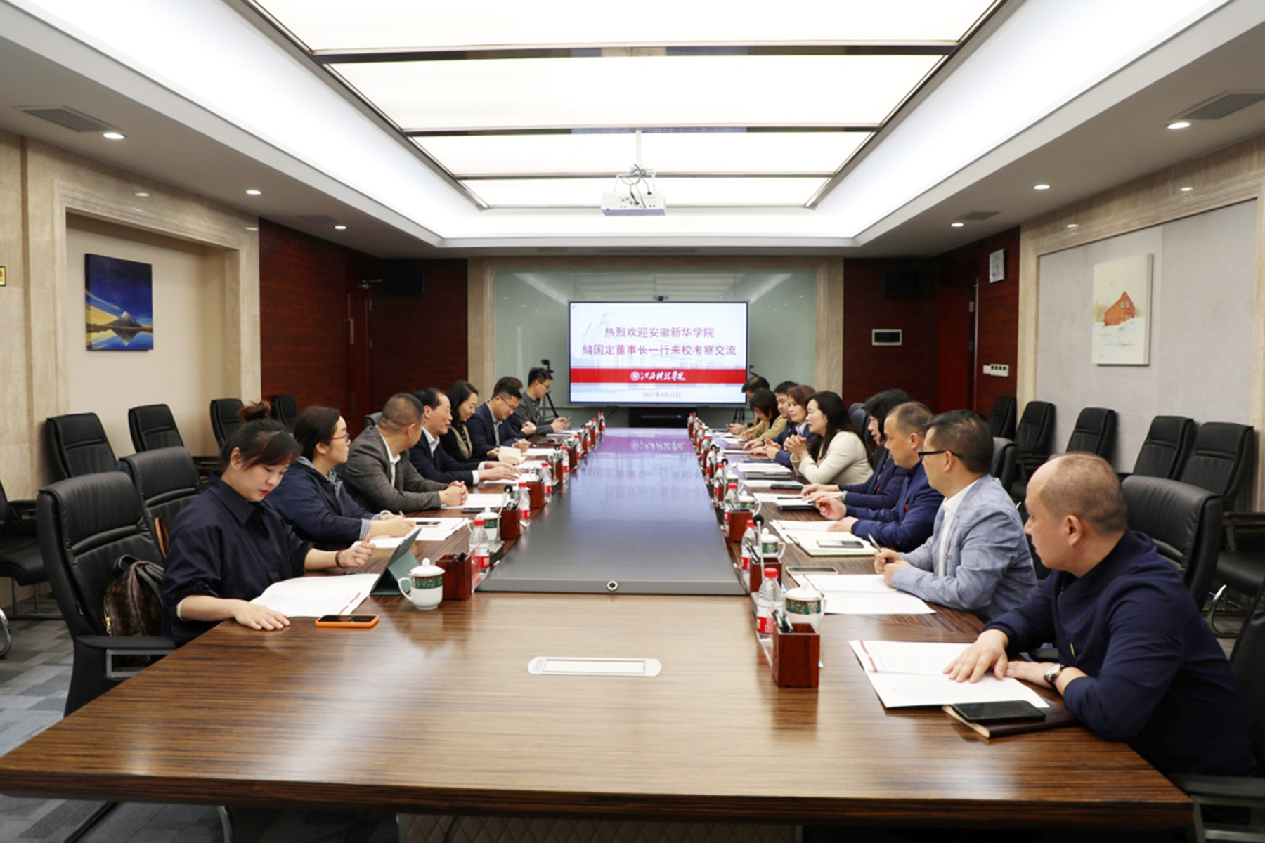 随后,考察组参观了该校校史展、实验楼、艺术学院展厅、杏坛广场、学生食堂等教学及生活场所。座谈会上,双方就师资队伍建设、校园文化环境建设、管理体系标准化建设、品牌宣传等进行了对口交流。
