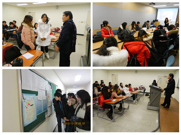12月26日,参加此次研修游活动的14名同学于韩国时间16时抵达首尔仁川国际机场,开始了为期六天的韩国之旅。27日,同学们来到了韩国尚志大学进行交流学习,beat365网登交流团受到了尚志大学校方的热烈欢迎。交流活动形式多样,一节生动的韩语课、一段生动的校园简介影片和一段充满韩国特色的演讲给同学们留下了深刻的印象,同学们还参观了尚志大学的学术情报院和附属韩方医院。