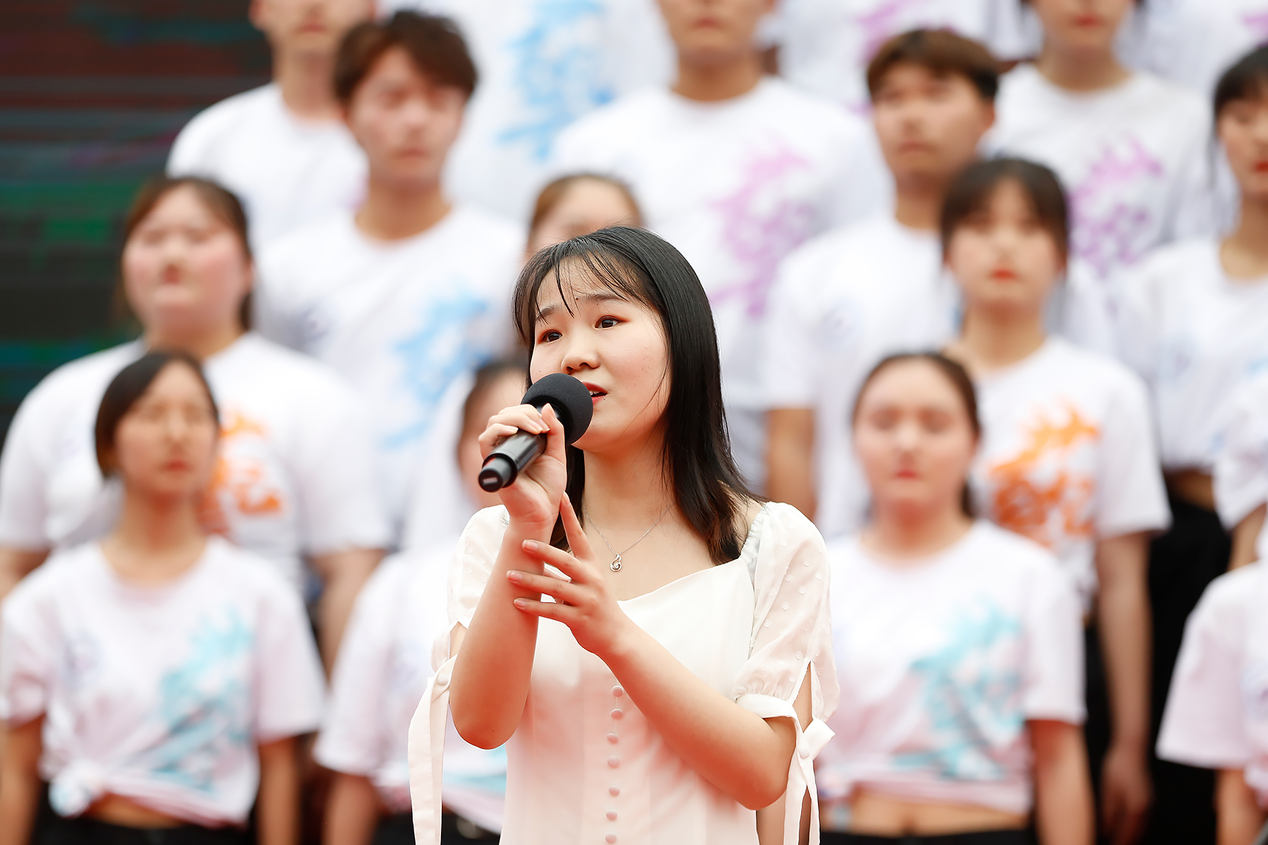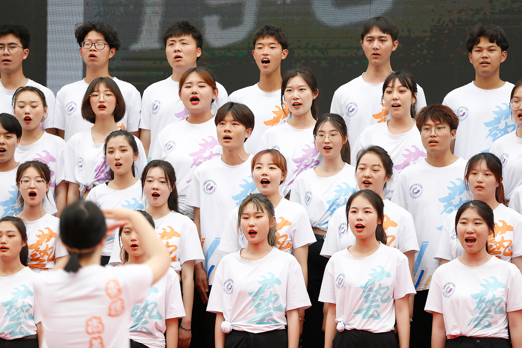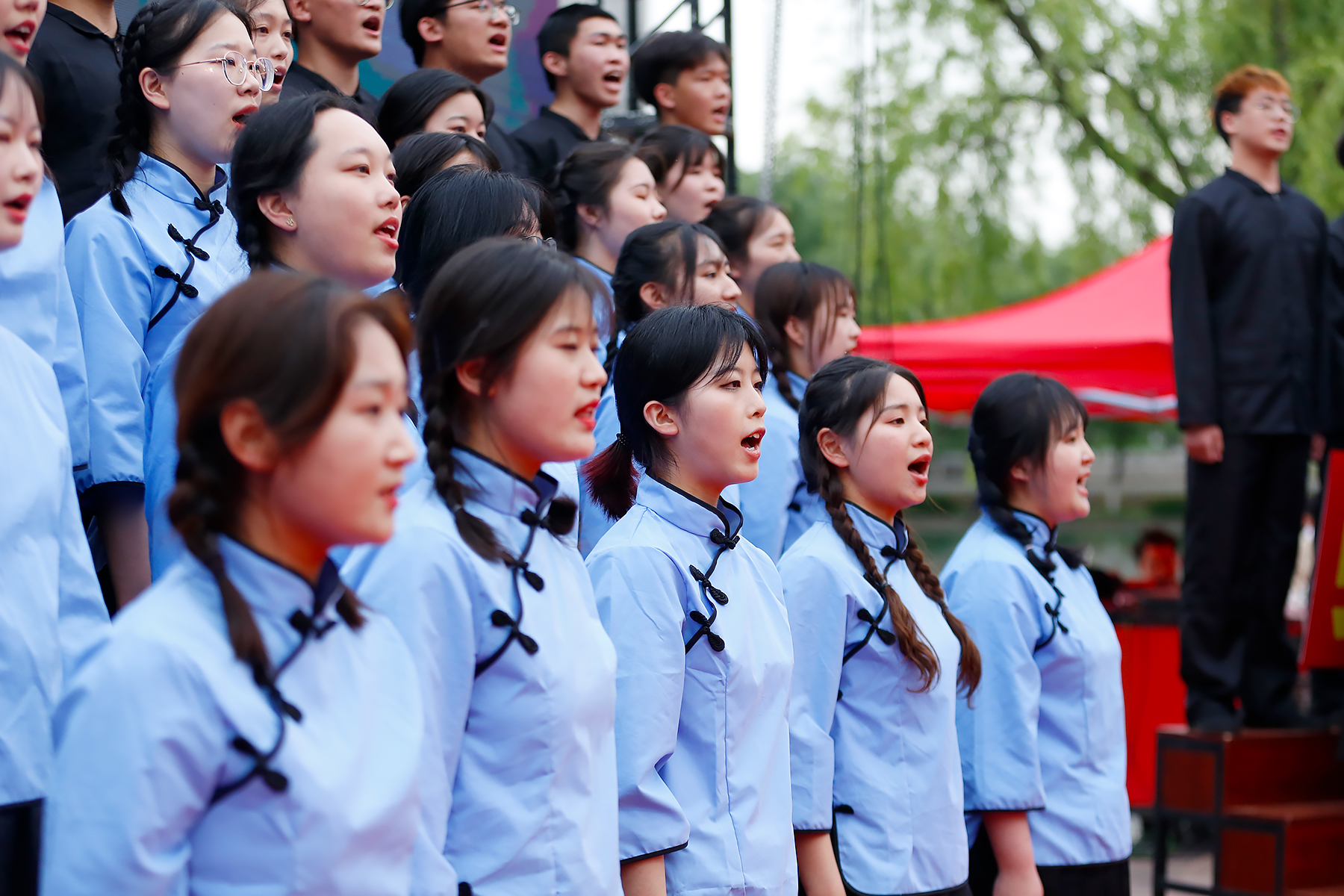 科技学院饱含深情的演唱《歌唱祖国》,药学院和文化与传媒学院代表队心有灵犀,选择同一首歌曲《映山红》,药学院激奋人心的表达和文化与传媒学院婉转动人的唱腔,演绎出不同的情感。
