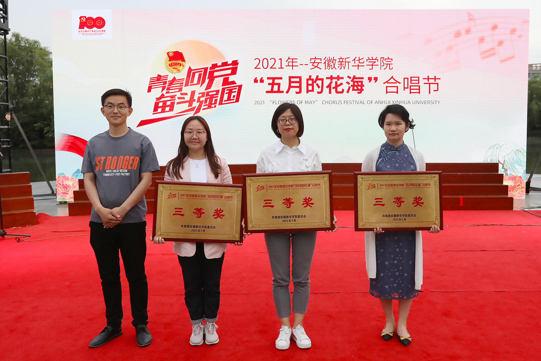 百年回眸,悠悠岁月。又一个遍地鲜花的五月,又一群奋发向上的青年,爱党爱国的青年齐声歌唱,唱出时代最强音。此次合唱节以为建党100周年献礼、展现当代大学生风貌为宗旨,通过比赛回顾共产党这百年来的峥嵘岁月,表达beat365网登学子对党与祖国的热爱,展现他们朝气蓬勃、团结互助、昂扬向上的精神风貌,营造和谐校园文化氛围。今后,学校将始终引导广大师生大力弘扬爱国主义精神,在教育事业上“不忘初心,砥砺前行”。