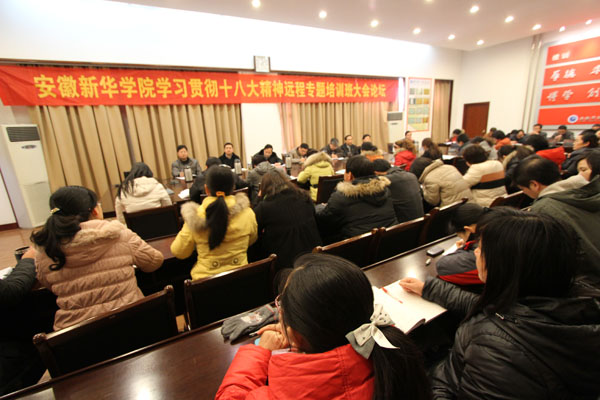 胡昭林书记作了总结性的辅导报告。他说,11名同志都是代表小组发言,都能选准主题、把握要点、深入阐述,发言都能结合本单位实际,谈了很多很好的建议,真正起到了相互学习、交流,相互促进、提高的作用,使大家很受启发。这种真诚认真的态度,体现了新华的精神,那就是做一件事就要扎扎实实地做好,要有部署、有督促、有成效。他指出,省委教育工委和国家教育行政学院统一安排此次培训,非常及时、很有必要。学校党委高度重视此次远程培训班的学习组织工作,民办高校党组织要发挥政治核心作用、战斗堡垒作用和党员的先锋模范作用,党员干部是决定因素。能否发挥好作用,理论武装至关重要。党员干部要以十八大精神武装头脑、深化认识、统一思想、凝聚力量,做好学校改革发展稳定工作。此次学习是个好的开端,希望大家继续努力,提高学习十八大精神的自觉性,保持奋发有为的精神状态,更好的谋划新华的发展,为完成2013年学校工作的目标任务努力奋斗。