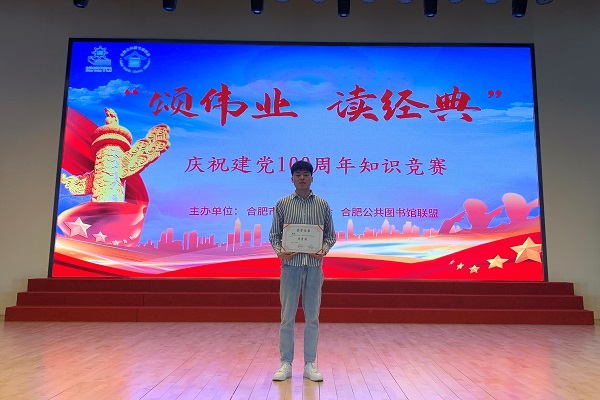 6月11日上午,由合肥公共图书馆联盟、合肥市图书馆学会主办的“颂伟业 读经典”——庆祝建党100周年党史知识竞赛在合肥市图书馆四楼多功能厅举行。来自全市各级各类图书馆、城市阅读空间的百余名选手参加本次竞赛,beat365网登参赛选手樊宇晨在本次比赛中获得优秀奖。