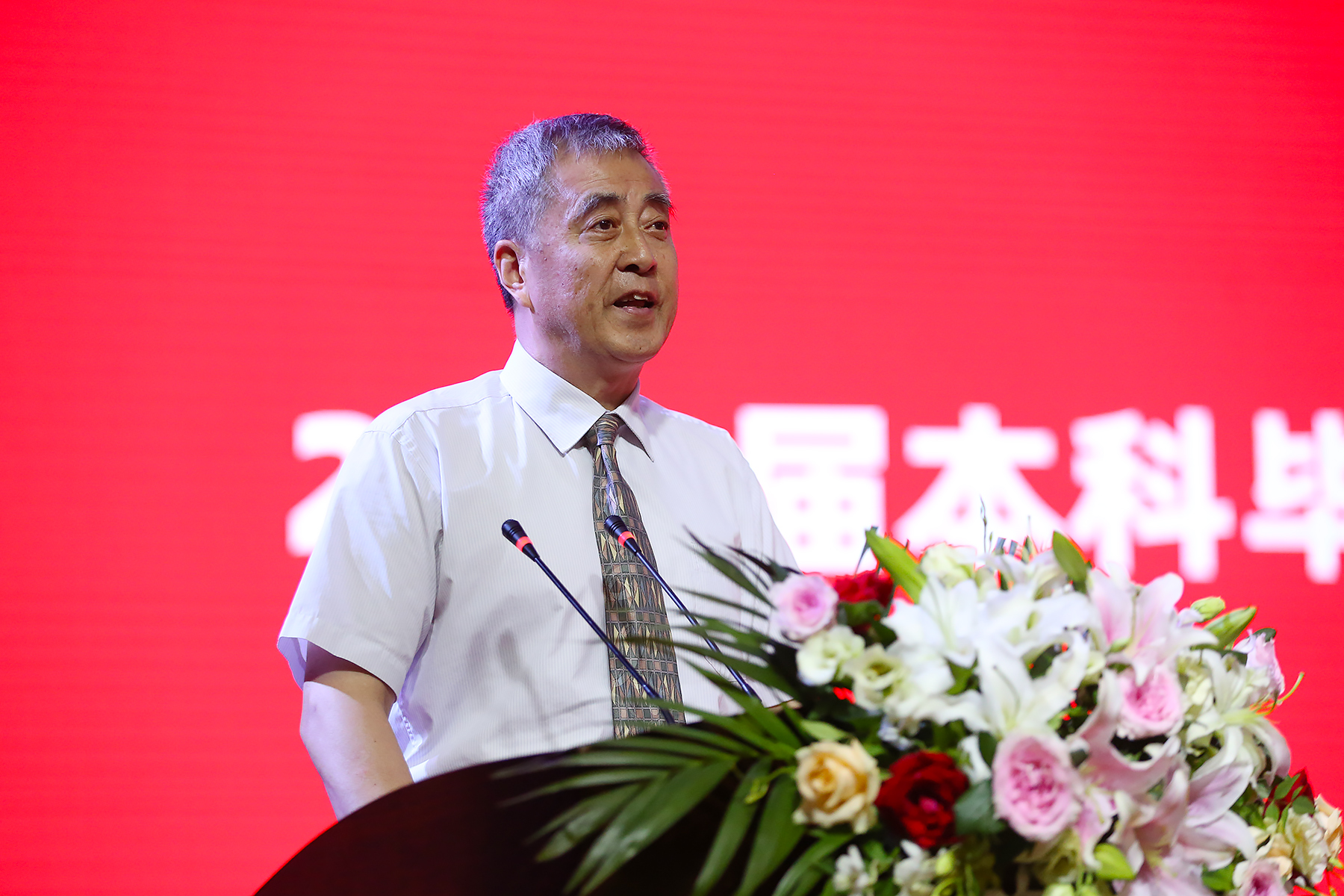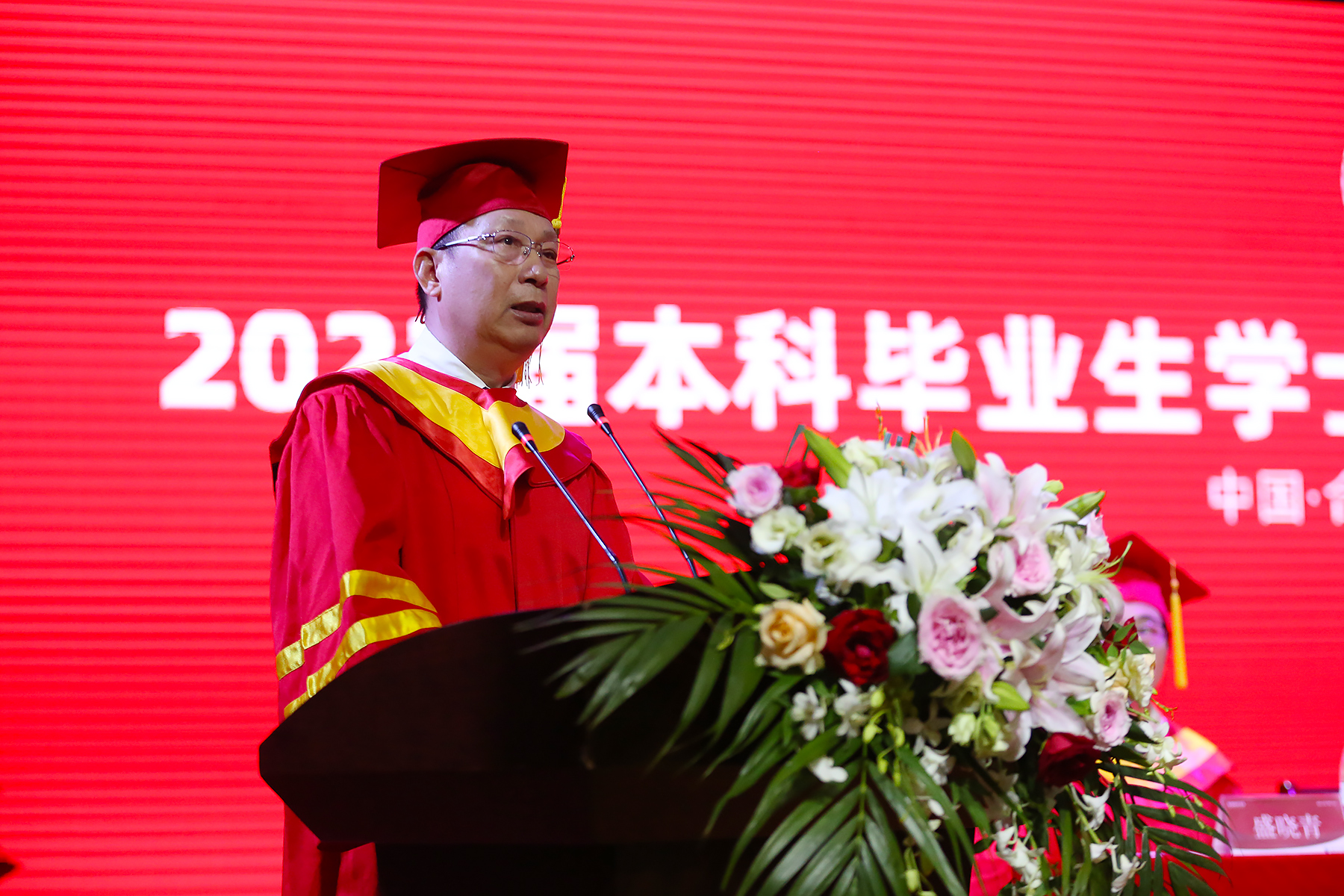 “同学们,让我们相约,十年之后,当你到了而立之年,欢迎回到母校,和老师们一起聊聊走过的路。那时候,欢迎你们的也一定正如今日这般,是新华园的鲜花与掌声!”人生需要坚持对理想目标的执着与追求,教师代表范东生教授为毕业生深情寄语。