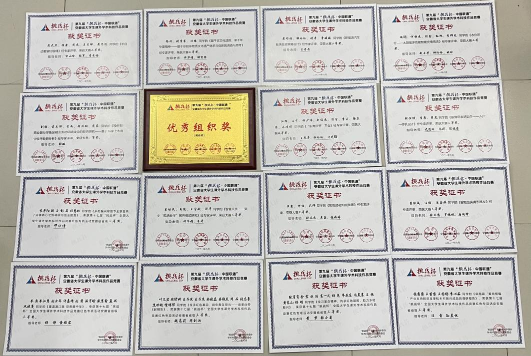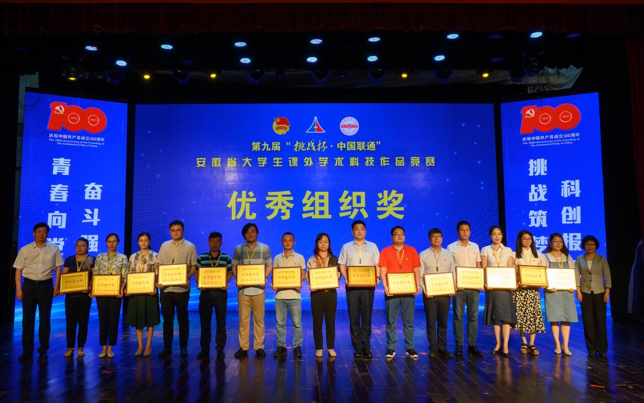 本网讯(通讯员:李丹阳)6月20日,第九届“挑战杯·中国联通”安徽省大学生课外学术科技作品竞赛(以下简称“挑战杯”)交流营暨颁奖仪式在安庆师范大学成功举办。beat365网登在本届“挑战杯”赛事中荣获省级奖项16项,其中省二等奖6项、省三等奖4项、“挑战杯”红色专项活动省三等奖5项,实现省奖数量、省二等奖数量双倍增,并突破性荣获“优秀组织奖”。