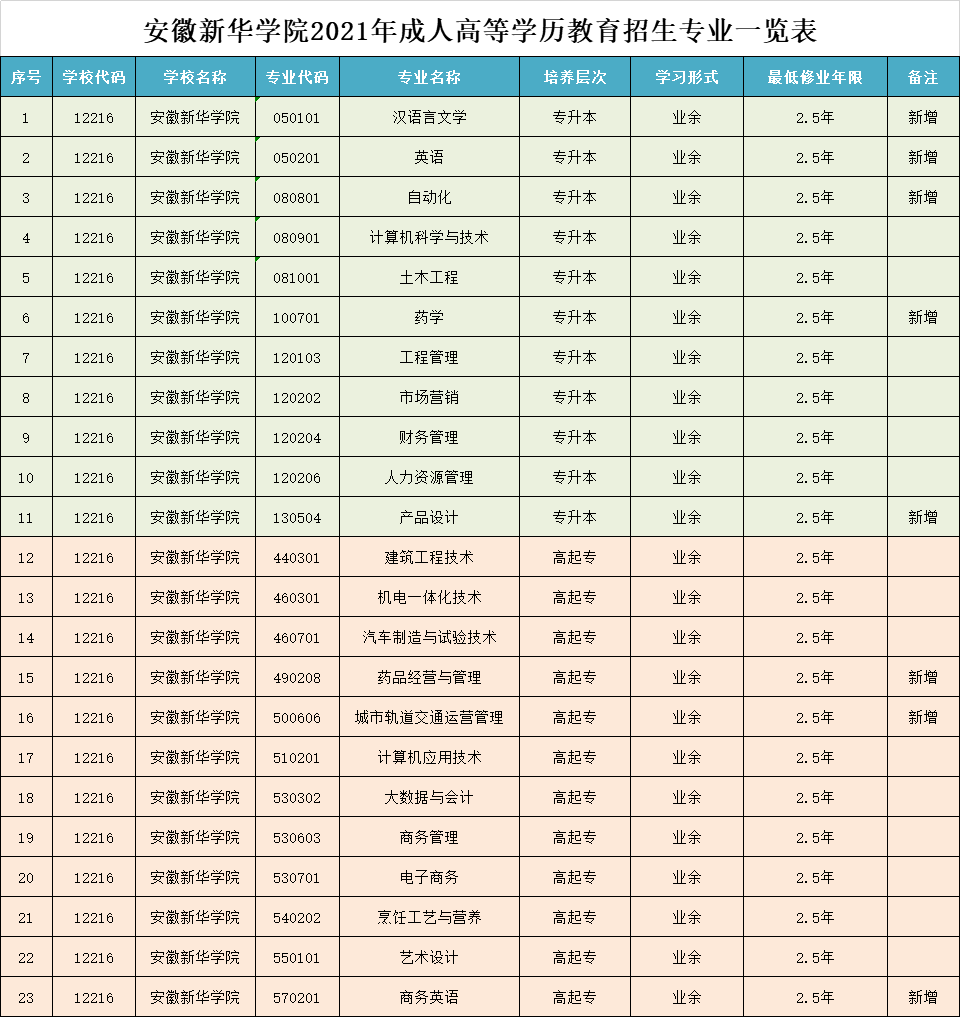按照教育部和教育厅相关文件要求,学校对新专业的申报工作高度重视,教务处、继续教育学院密切配合,科学论证,最终申报8个新专业,申报材料在报省教育厅获批后,继而上报教育部。教育部对高校新增专业进行重点评议,审核合格后方予以备案和公布。新增专业学制均为2.5年,自2021年开始招生。