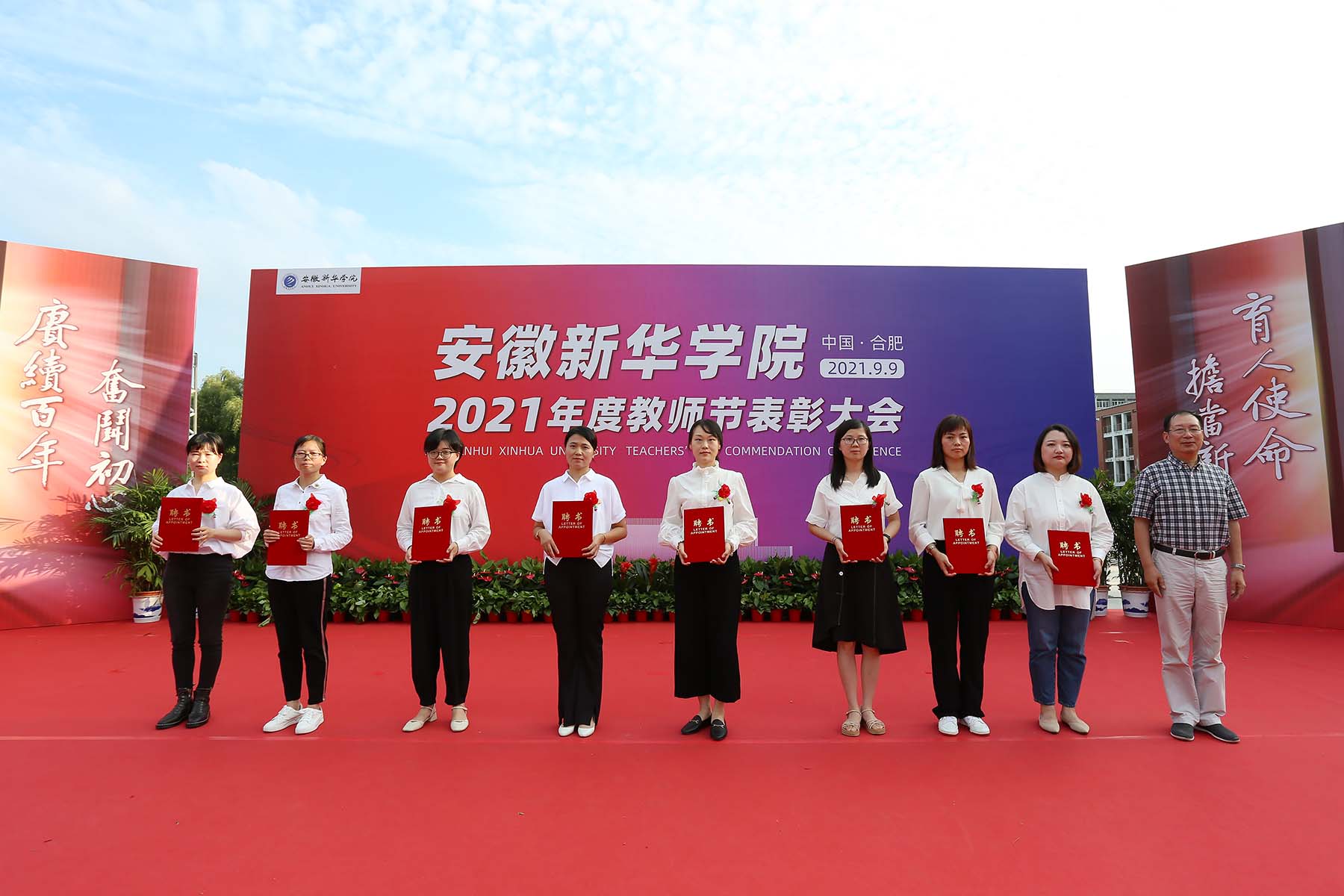 赓续百年奋斗初心,担当新华育人使命。勤耕不辍,硕果累累,展望未来,任重道远,激情澎湃。本次教师节表彰大会是教师节系列活动之一,旨在表彰在立德树人、教书育人工作中取得突出成就和做出突出贡献的先进教师,激励广大新华人不忘初心,奋力开创新华教育事业发展新局面,为办好人民满意的教育而奋勇前行。