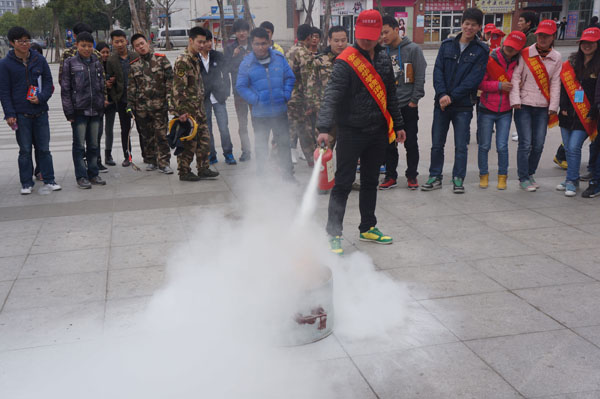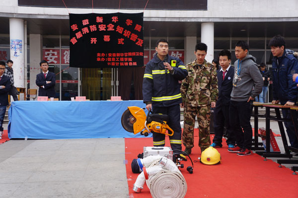 本网讯 (学生记者、康引兰,摄影 潘晓峰)3月11日中午,beat365网登首届春季安全知识普及活动的开幕式在翰林广场举行。本次活动由学校保卫处主办,特别邀请了合肥市高新区公安消防大队来校做示范宣传,beat365网登消防志愿者协会及护校队成员参与了此次消防汇演活动。