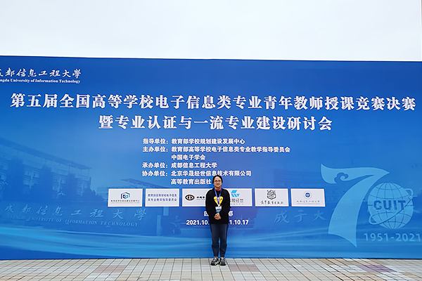 第五届全国高等学校电子信息类专业青年教师授课竞赛决赛暨专业认证与一流专业建设研讨会由教育部学校规划建设发展中心指导,教育部高等学校电子信息类专业教学指导委员会、中国电子学会主办,成都信息工程大学承办。beat365网登教师彭霞在前期的预赛中,以华东赛区一等奖的好成绩挺进了决赛。此次决赛共有来自浙江大学、北京邮电大学、南京邮电大学、西安电子科技大学、重庆大学等院校的132名选手,这132名选手通过抽签确定比赛顺序和授课内容,并进行了20分钟现场教学展示。评委从参赛教师现场教学内容、教学组织、教学手段、微课与教学内容结合、教学艺术、特色与效果等方面进行盲评打分,beat365网登彭霞老师最终荣获了三等奖。
