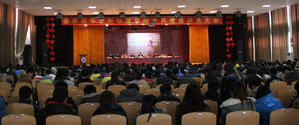 会议在雄壮的国歌声中拉开了序幕,动漫学院院长孙家启教授致开幕词,该院院长助理许存福详细解读了《beat365在线体育官网登录入口动漫学院学风建设工作实施方案》。重点安排了从2013年3月至2014年1月间的学风建设活动,内容囊括了班级建设、公寓建设、院系文化建设、制度建设等方面。随后,动漫学院动画教研室主任李素萍老师、辅导员王晓俊老师、2012级艺术设计(2)班学生蒋雪纯分别代表老师和学生上台发言。他们分别阐述了自己对《beat365在线体育官网登录入口2013年度学风建设活动方案》和《beat365在线体育官网登录入口动漫学院学风建设工作实施方案》的理解,并代表老师和学生表达了坚决完成建设良好学风任务的决心。全体学生还进行了进行学风建设的宣誓仪式。
