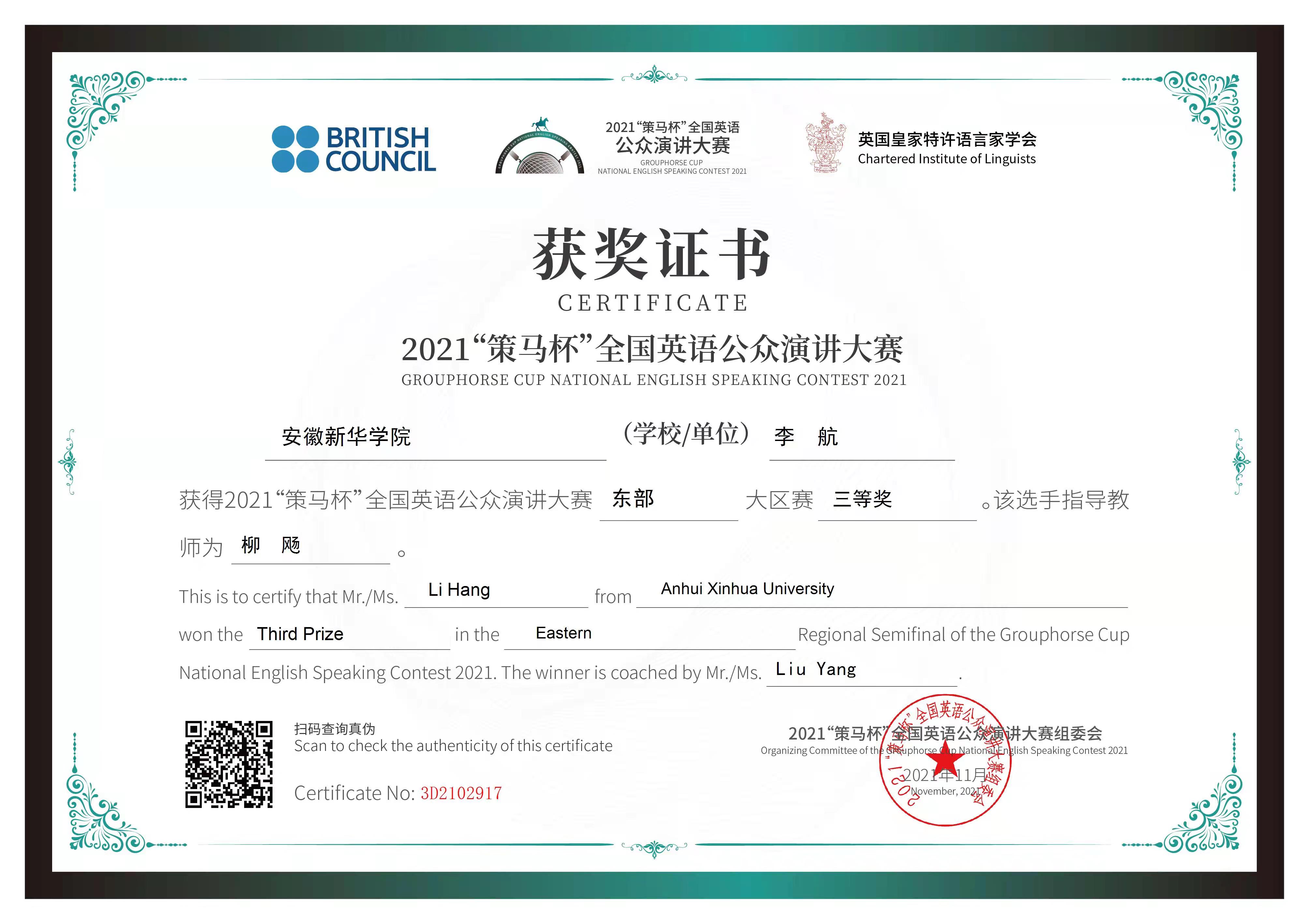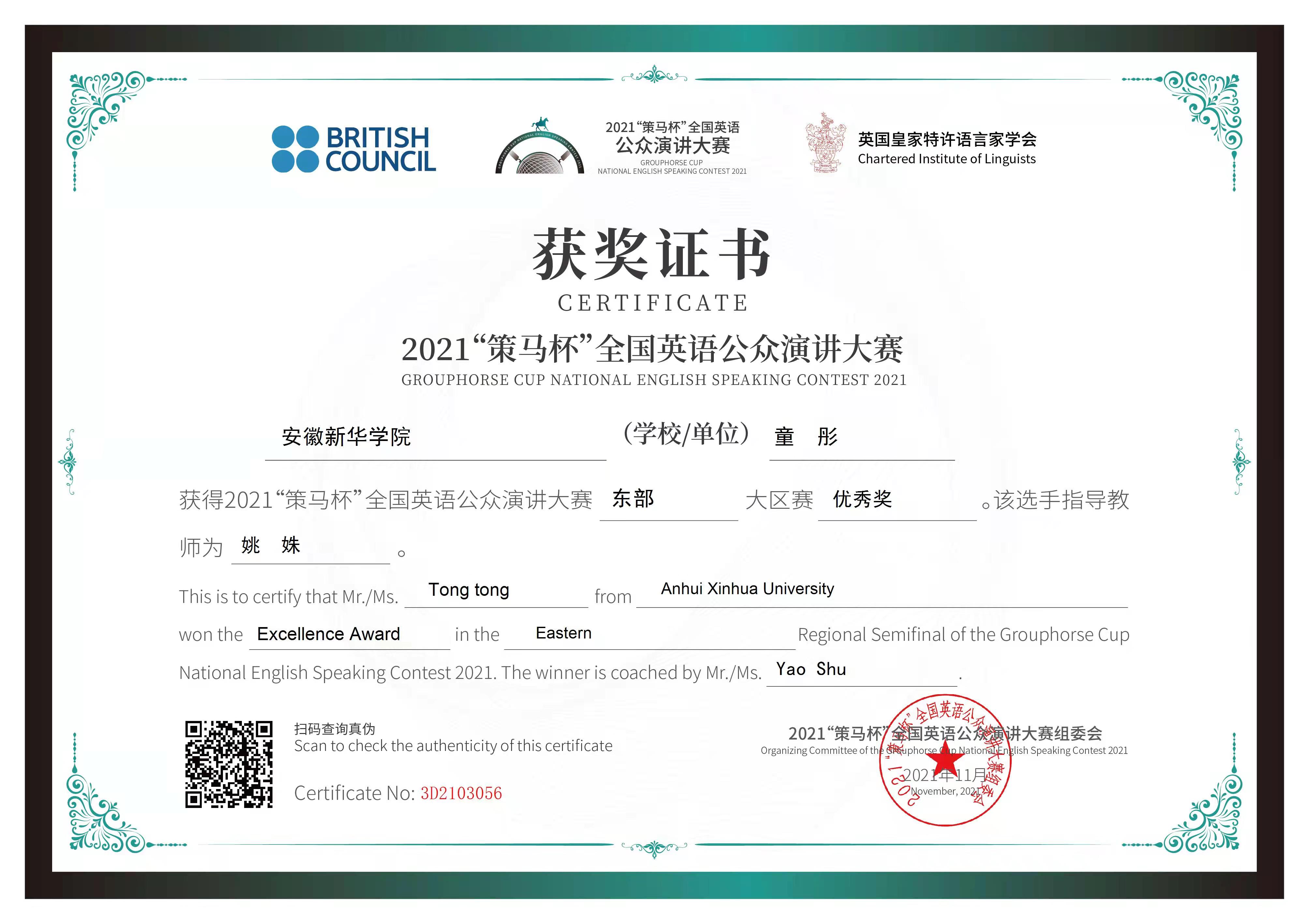 优秀!beat365网登学子在2021“策马杯”全国英语公众演讲大赛东部大区赛中喜获佳绩