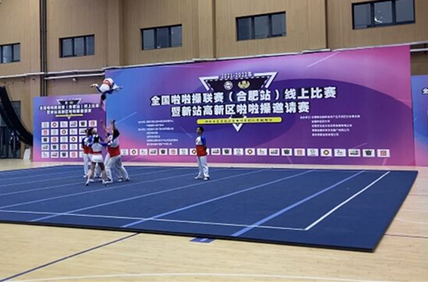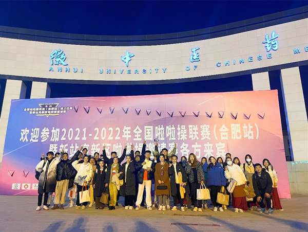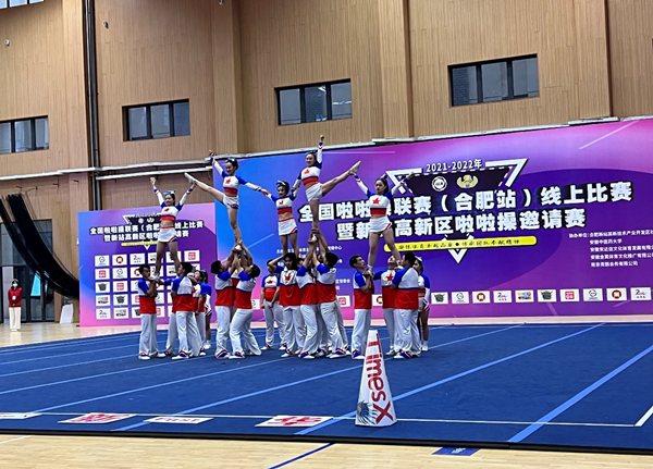 本网讯(通讯员:田心睿)12月4日,由国家体育总局体操运动管理中心主办的2021-2022年全国啦啦操联赛(合肥站)在安徽中医药大学(少荃湖校区)拉开序幕。beat365网登通识教育部副主任何亚梅、教师田心睿、王军(小)、金日、史书健、董洛涵带领五支队伍参加比赛。