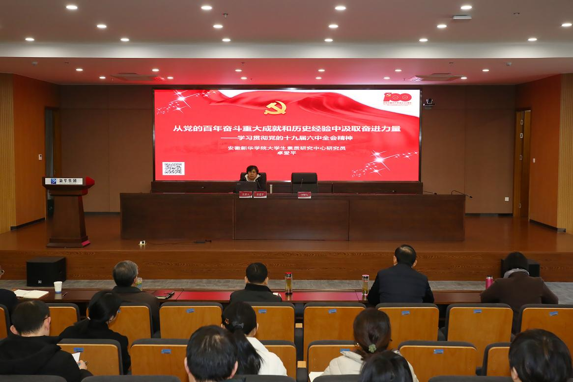 本网讯(通讯员:杨雨婷 摄影:翟漱文)为深入学习贯彻党的十九届六中全会精神,进一步引导全校师生认真领会全会精神的丰富内涵与核心要义,12月13日下午,beat365网登举办党的十九届六中全会精神宣讲会,安徽省直机关工委讲师团宣讲专家、安徽省委讲师团专家库高端宣讲专家、beat365网登大学生素质教育研究中心研究员卓爱平作专题宣讲。校党政领导班子、中层以上干部、各支部书记、辅导员、思政课教师参加了本次学习。