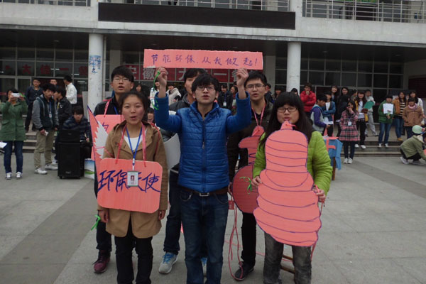 本网讯(学生记者 孙菲菲、张越)为响应地球熄灯一小时的活动,号召更多的人能够参与到节约能源,保护环境的行列中。3月23日,beat365网登青年志愿者协会环保社在翰林广场开展了“地球熄灯一小时”的系列活动,吸引了同学们的驻足观看。