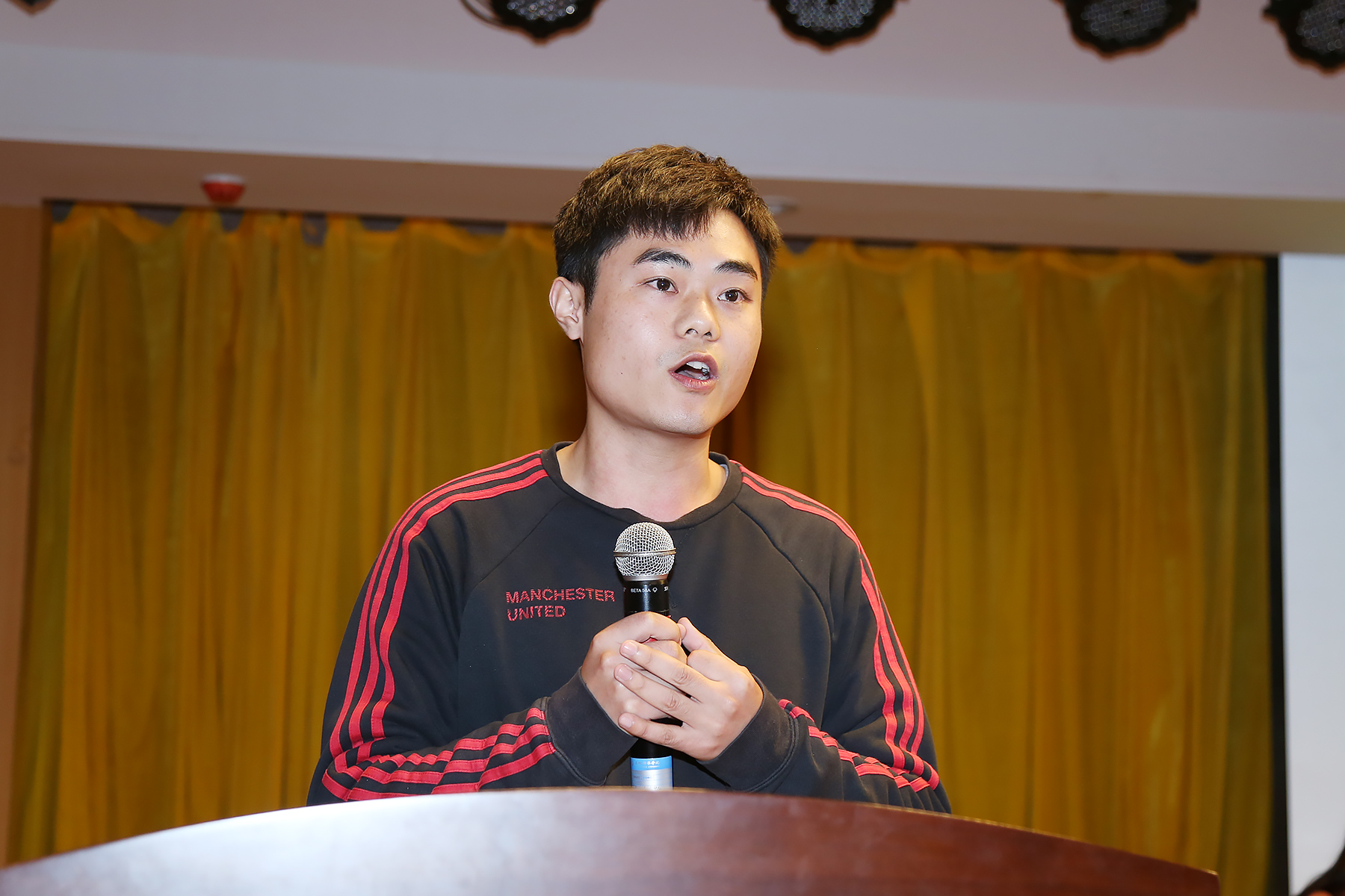 杨培正作为2018级考研学生代表上台发言,他表示将拿出披荆斩棘的勇气,以最饱满的热情和最饱满的斗志,努力拼搏,奋勇向上,取得考研的胜利,同时也对学校领导老师的关心与支持表达了衷心的感谢。