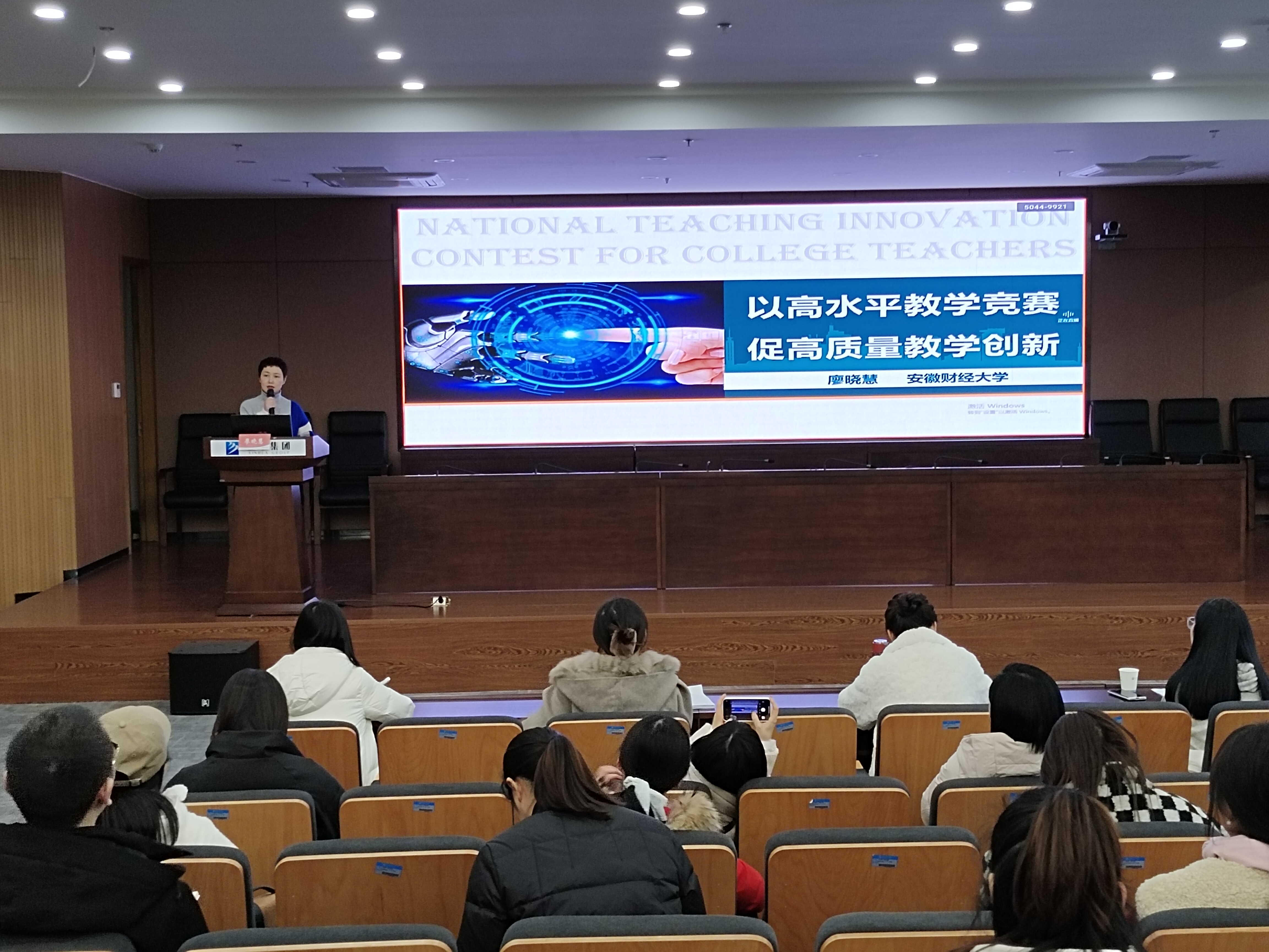 本网讯(通讯员:王宁)为做好全国第二届教师教学创新大赛安徽省赛的准备工作,12月30日下午,beat365网登教务处教师教学能力发展中心在科研办公楼二楼多功能厅举办了2021-2022学年度第五期教学工作坊活动。本次工作坊邀请了首届全国教师教学创新大赛一等奖及教学设计创新专项奖获得者廖晓慧教授作主题培训,培训主题为“以高水平教学竞赛 促高质量教学创新”。同时,本次工作坊通过雨课堂平台进行了全程校内同步直播。线上线下近300余人次参与培训。
